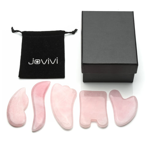 5PCS Natural Rose Quartz Gua Sha Scraping Massage Tool
