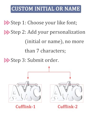 - ❤Custom Cufflinks for Men: These personalized cufflinks are individually for you. Each cufflink can be engraved with 7 characters.You can add initial alphabet letter, names or text and date. These cufflinks mean their special love for important people.