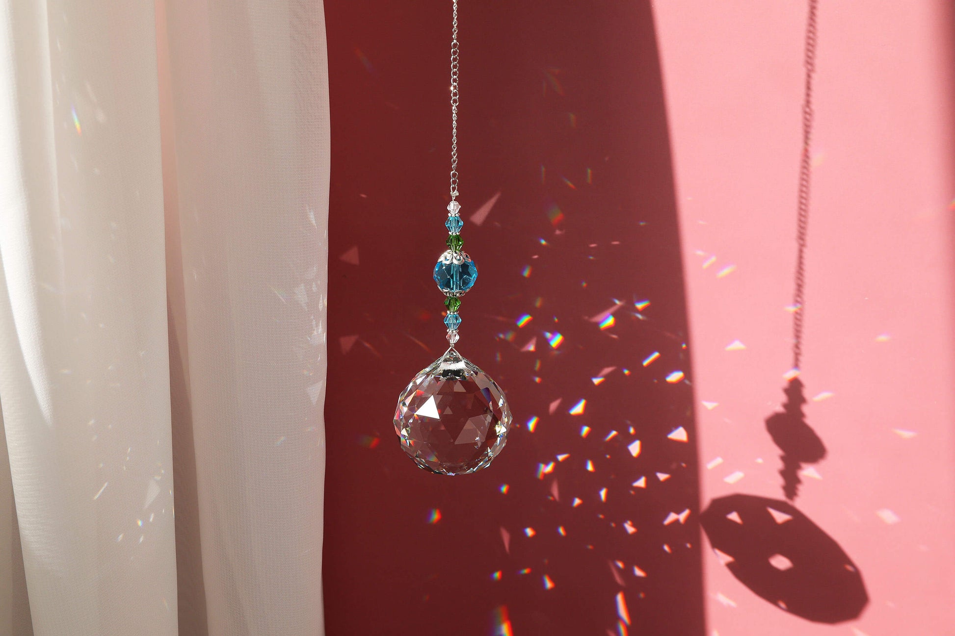 - The crystal ball pendant of this fengshui ornament is called rainbow maker or suncatcher ,very good light reflection.Hang this crystal in the sunshine and watch magnificent rainbows appear. As the light refracts through the crystal prisms it creates colourful spots of shining light all around your space.