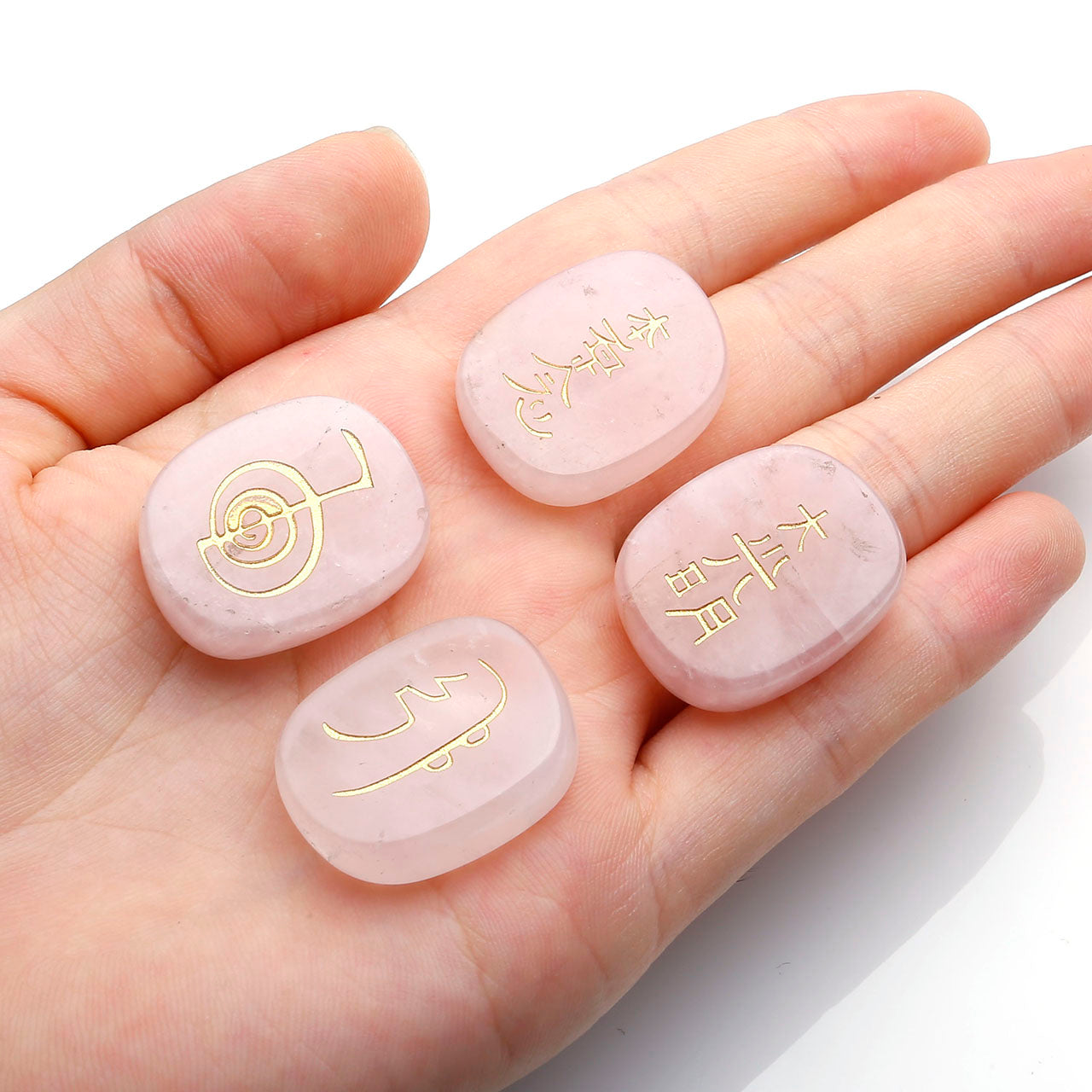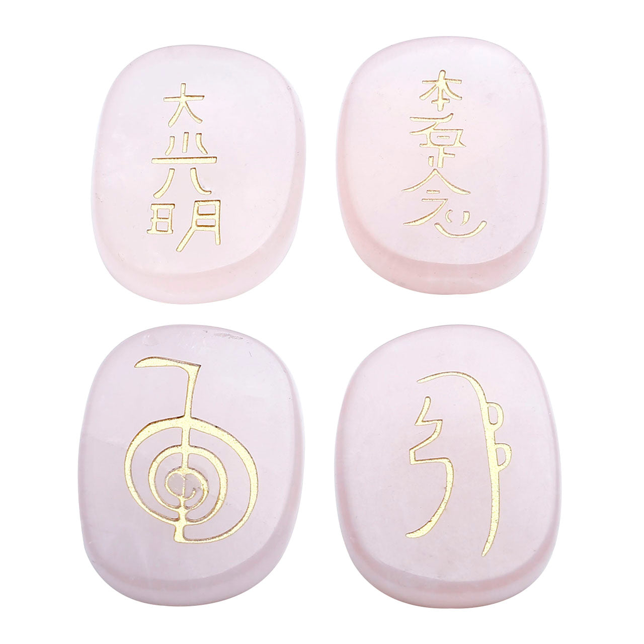 4PCS Rose Quartz Healing Crystals with Usui Reiki Symbols | Jovivi