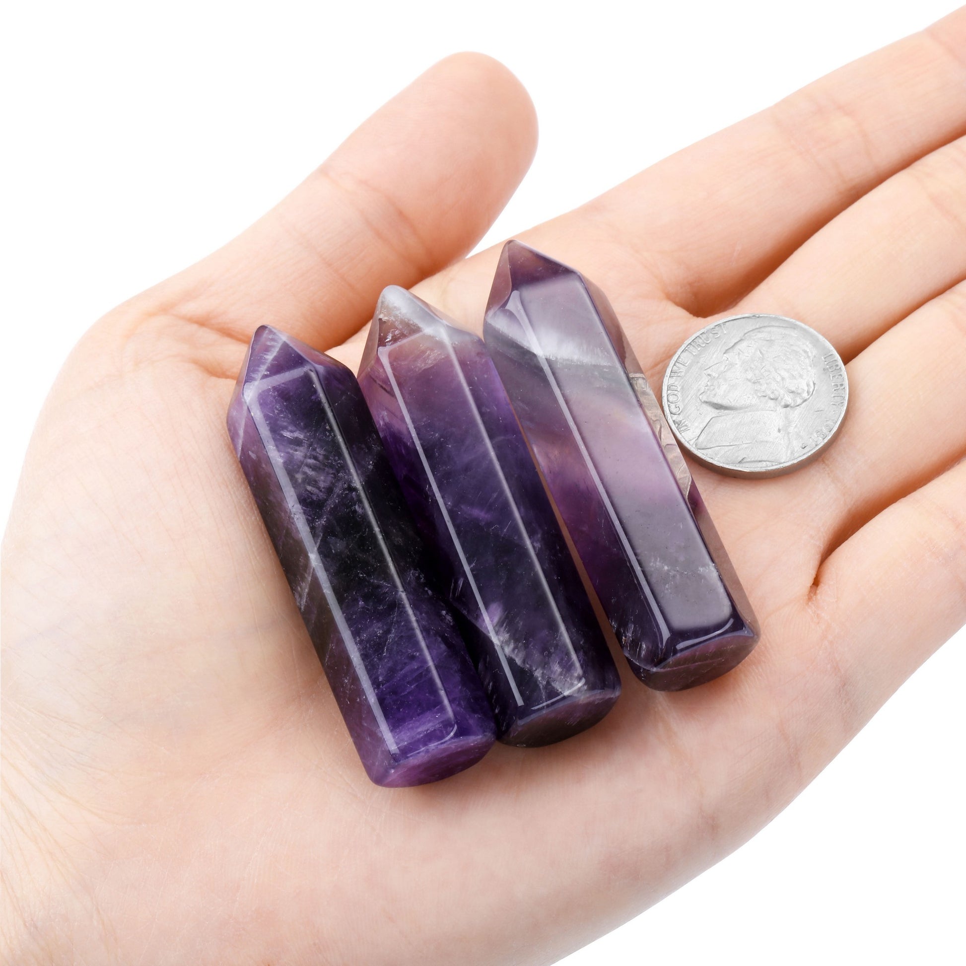 JOVIVI 2.2" Natural Healing Chakra Crystal Wand Points 6 Faceted Single Point Prism Bar Tumbled Gemstone Reiki Chakra Meditation Therapy Home Decor