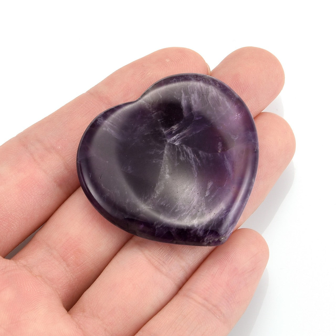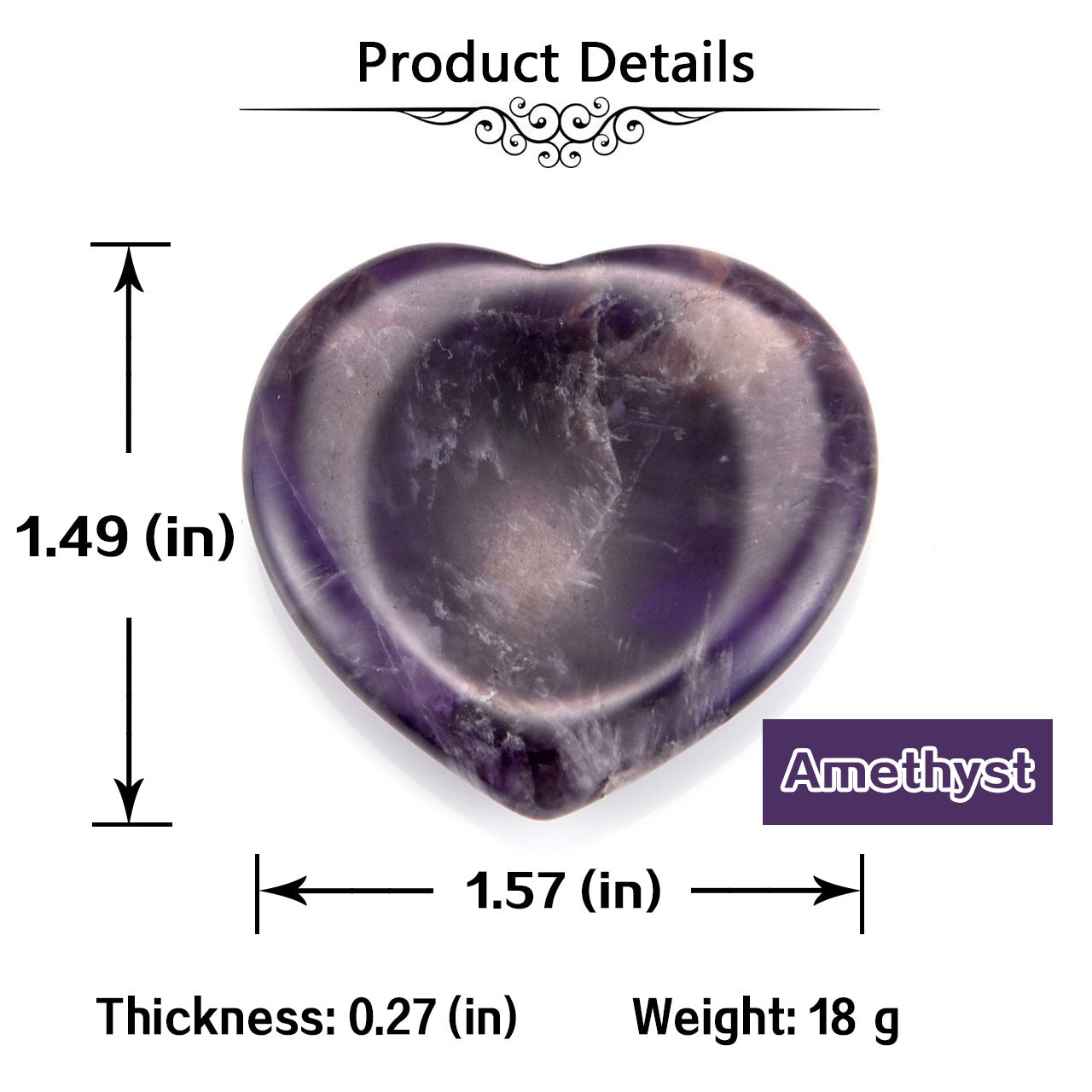 - Healing Crystal Amethyst Heart Love Thumb Worry Stone Pocket Palm Gemstones for Anxiety Therapy Geometry Chakra Reiki Balancing. Size: Length: 38mm, Width: 40mm, Thickness: 7mm. Stone Weight: 0.63 ounces.