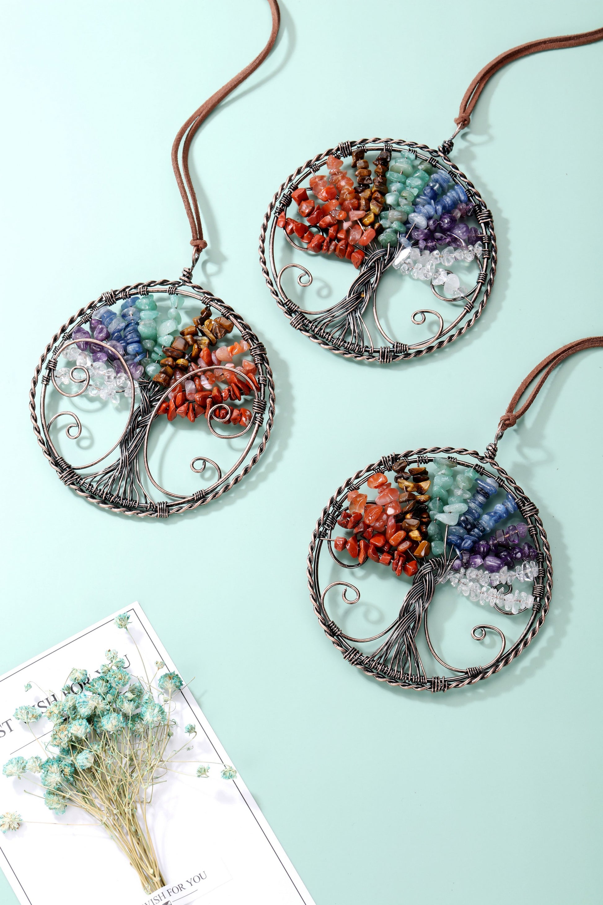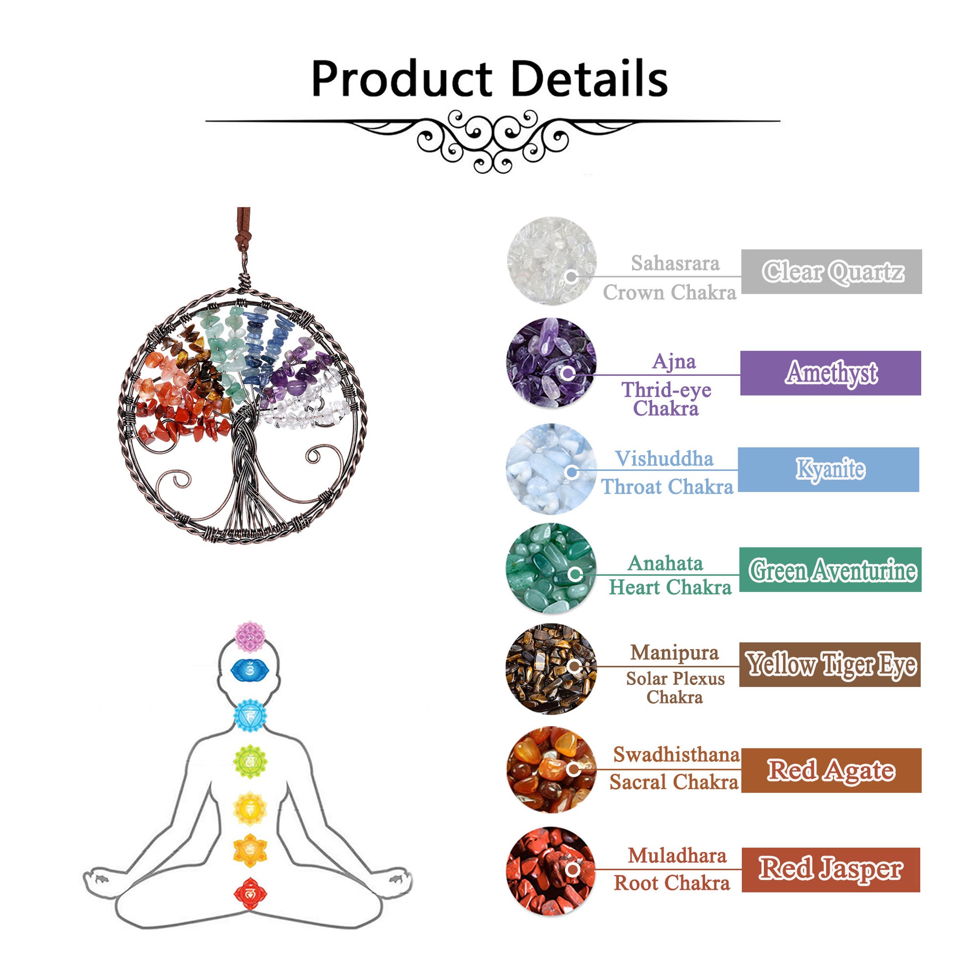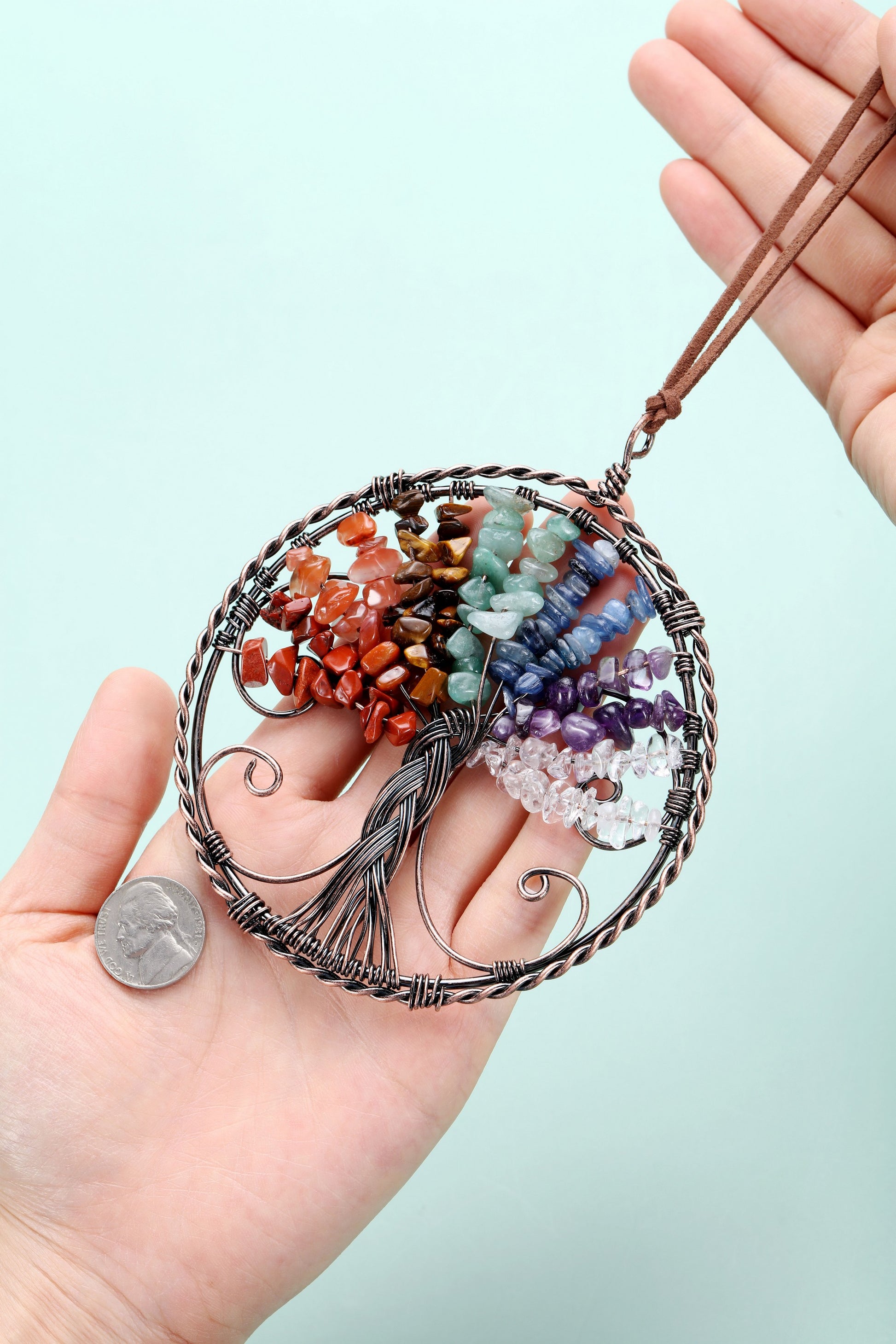 7 Chakra Healing Crystals Tree of Life Hanging Ornament | Jovivi