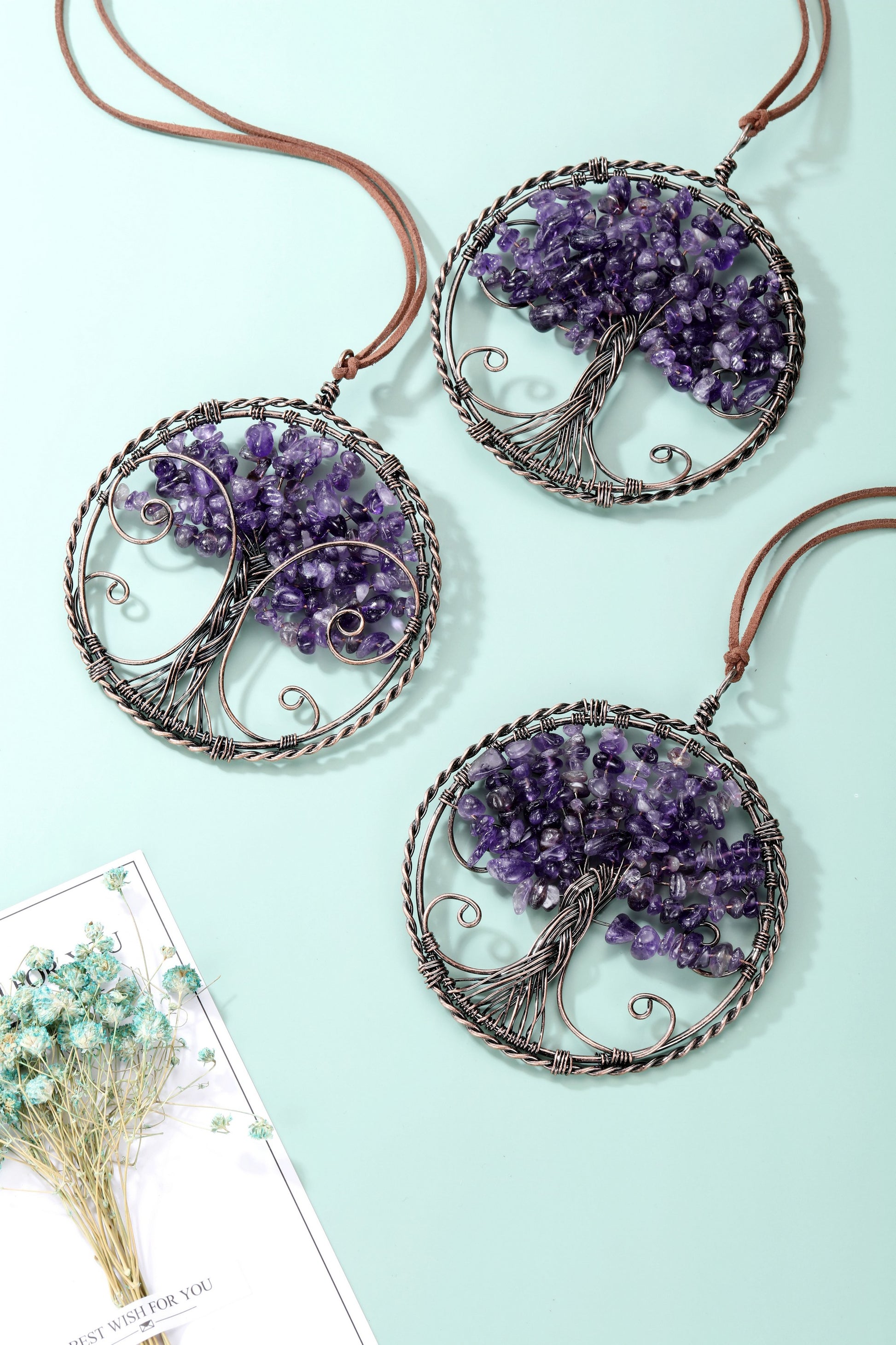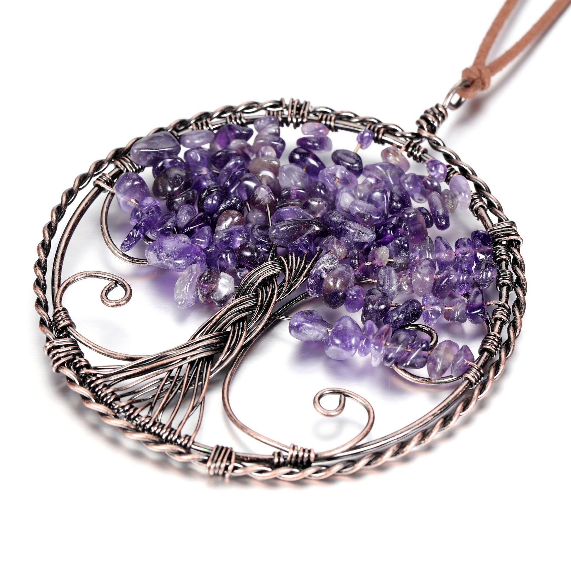 The tree trunk, branches and roots are wrapped by copper wire, tumbled natural gemstone beads are the leaves and seeds. Tree of Life symbolizes the interconnection of life and the flow of creation, also symbolizes wisdom, protection, strength, bounty, prosperity, beauty, and redemption. It also known as "The Tree of Knowledge", is depicted as a tree with many branches, and roots, illustrating the idea that all life on earth is related, and interconnected. It can bring about opportunity for change, serenity, and clarity.