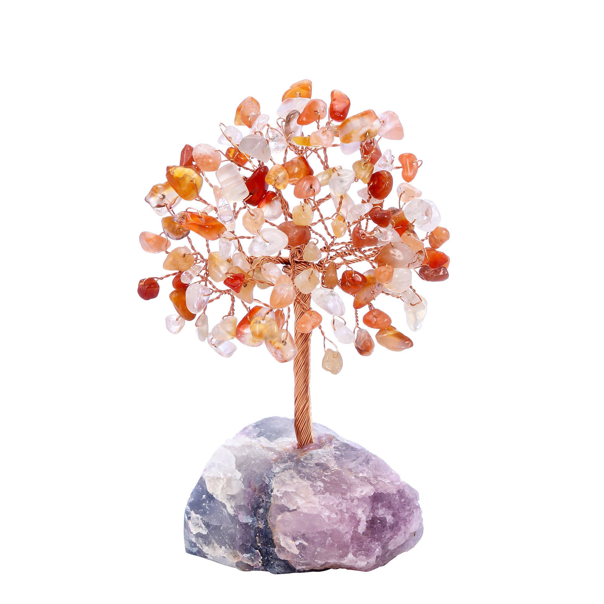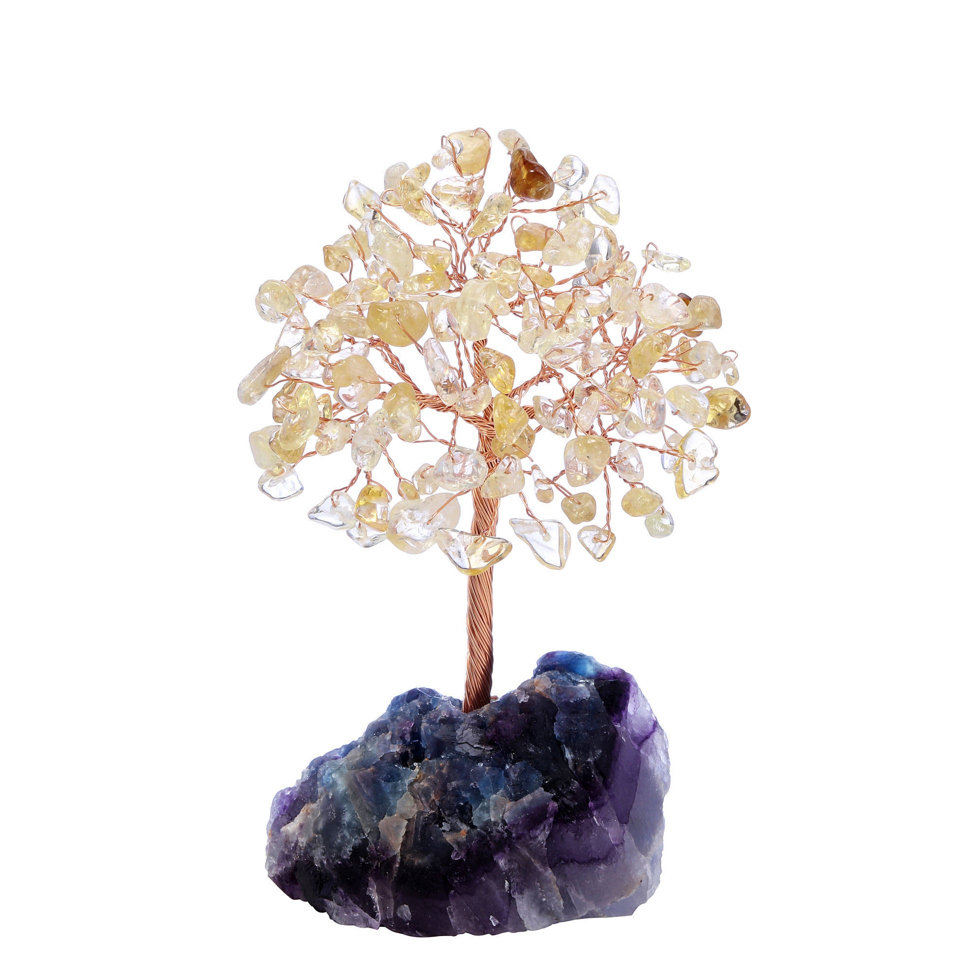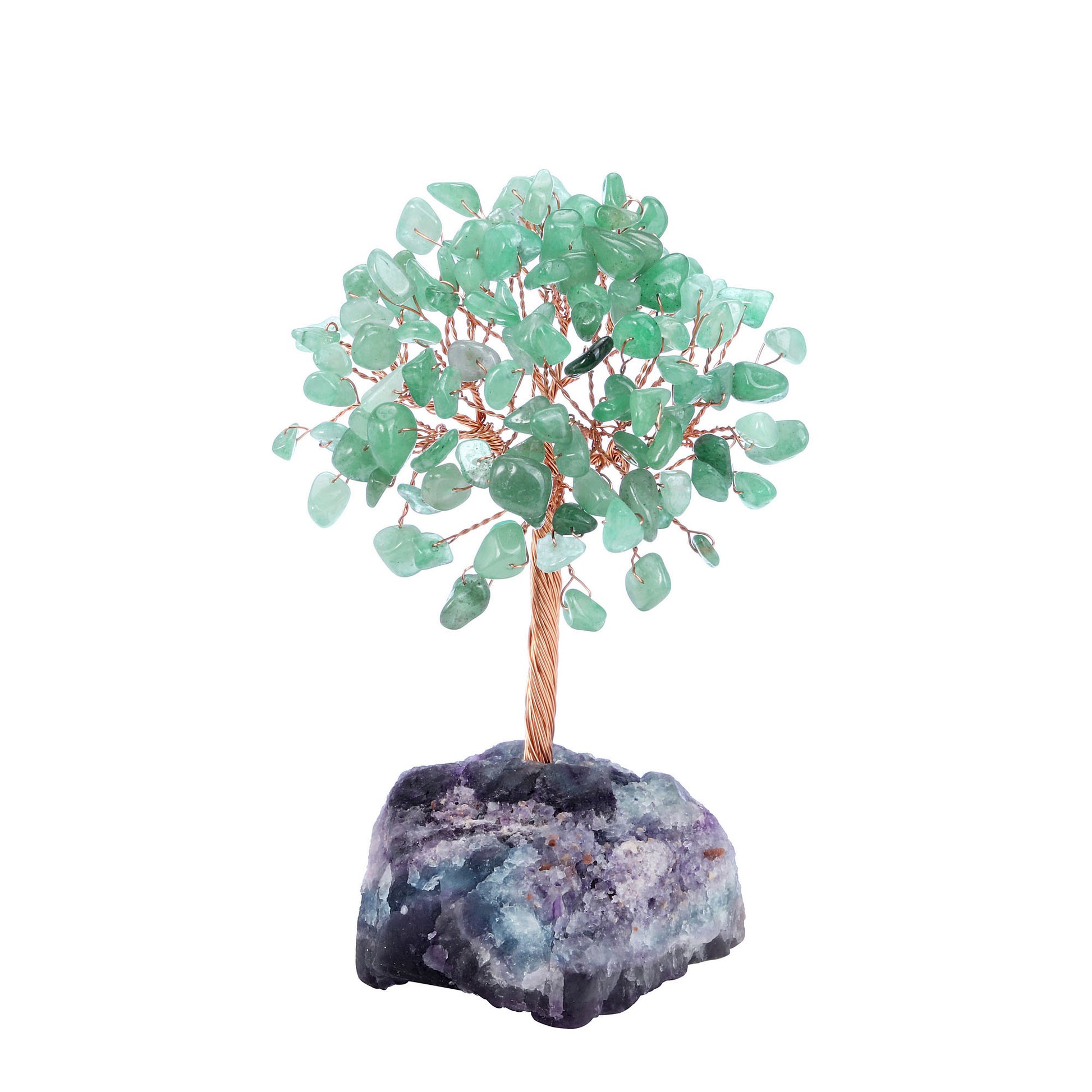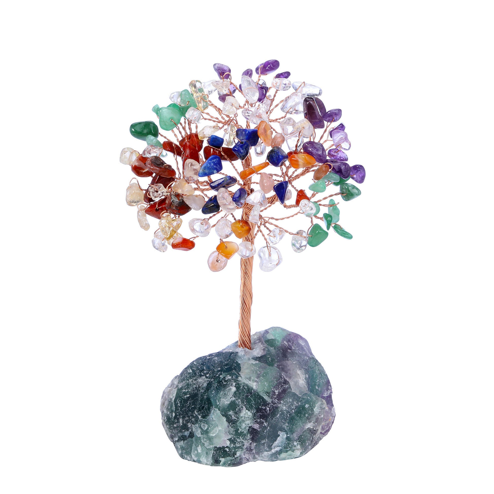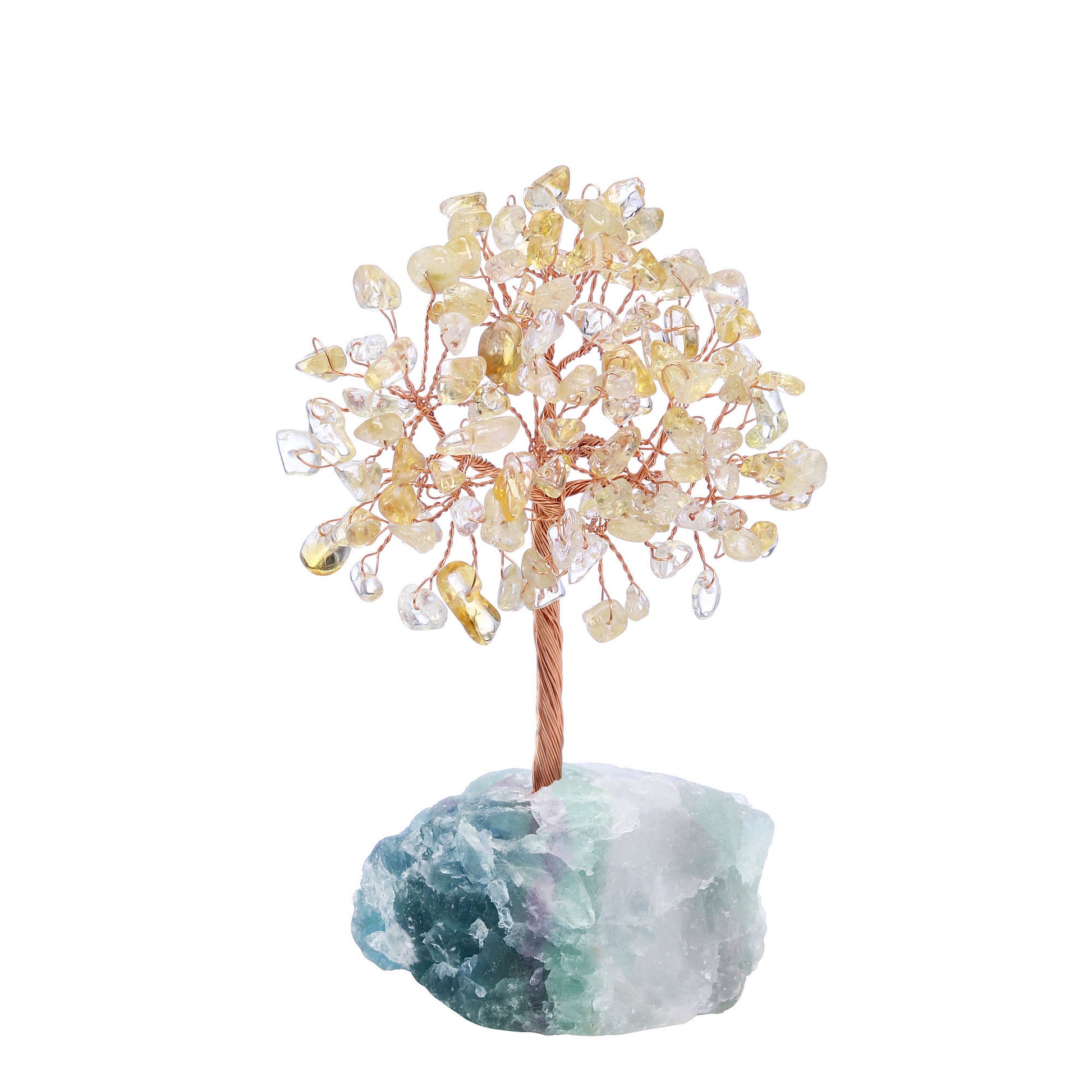 - Handmade Gemstone Copper Wire Wrapped Money Tree: Natural tumbled gemstones as leaves ,copper wire as trunk , fluorite stone as base ,an exquisite crystal tree of life decoration for home and office decoration. We will fold up all branches and pack secured while packing.