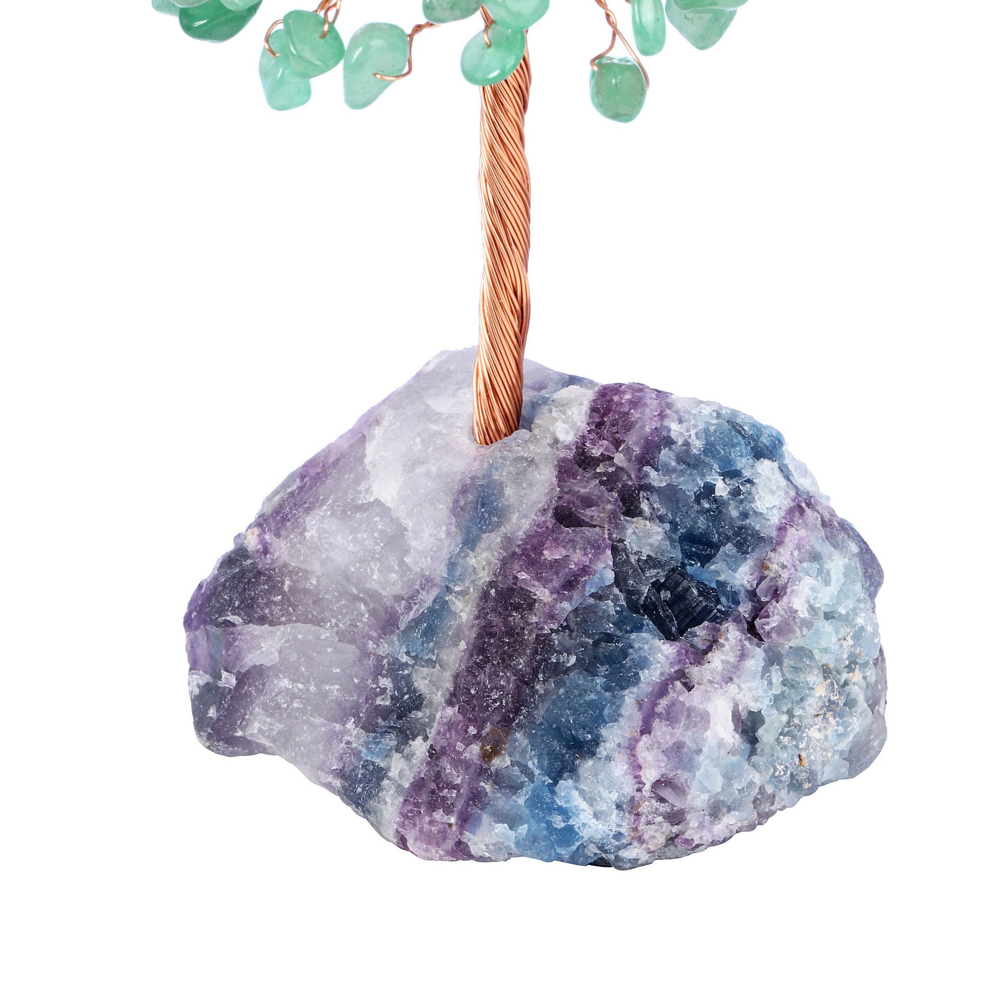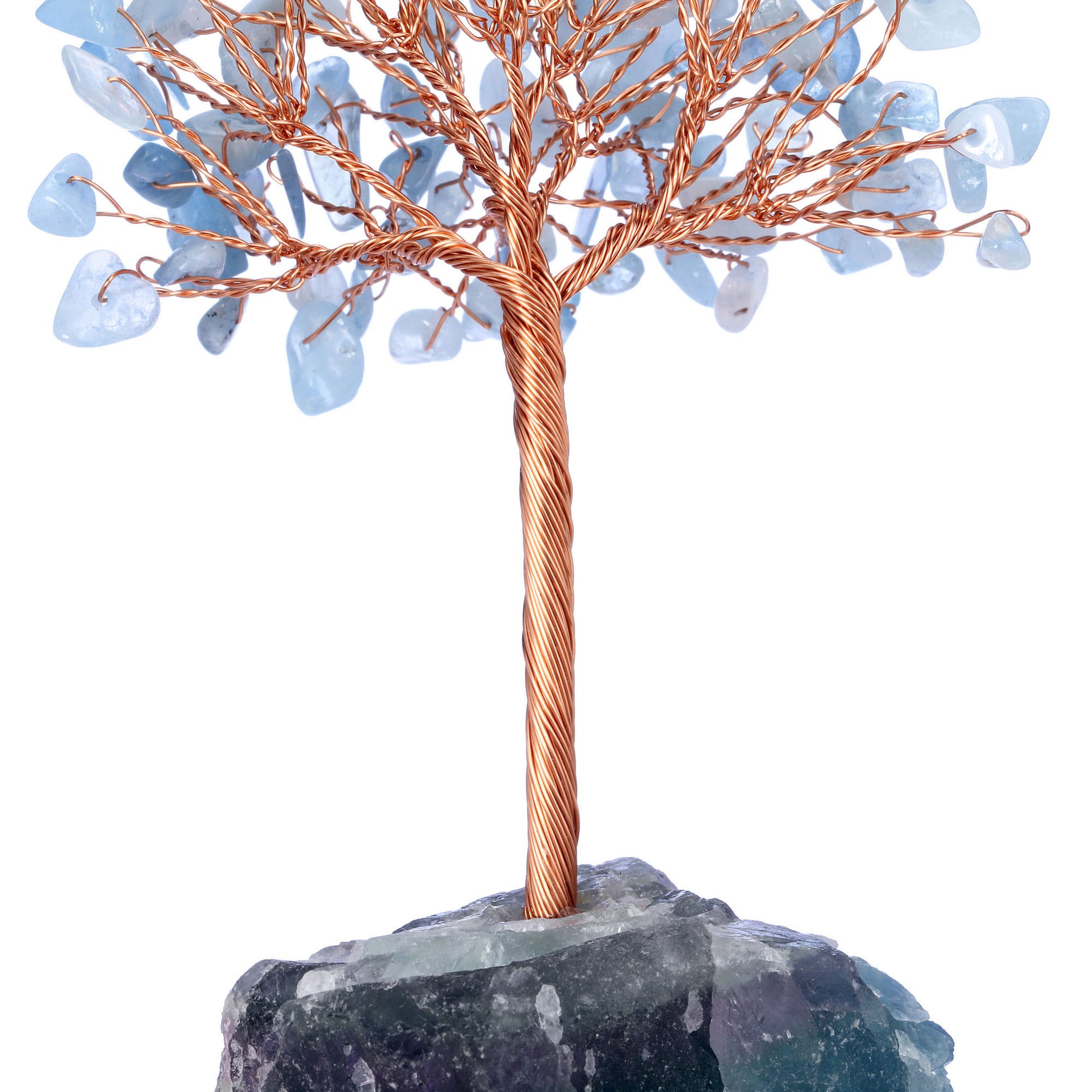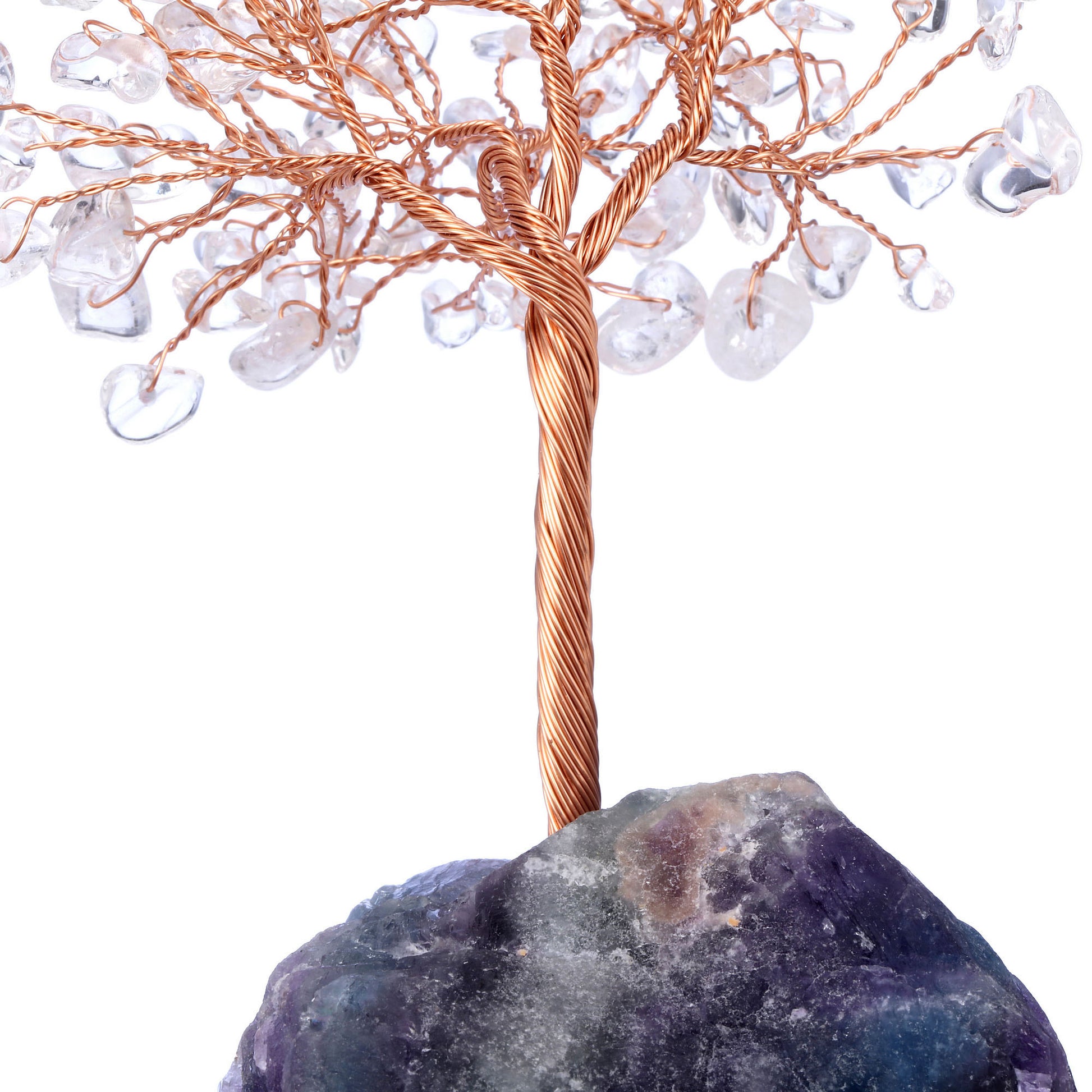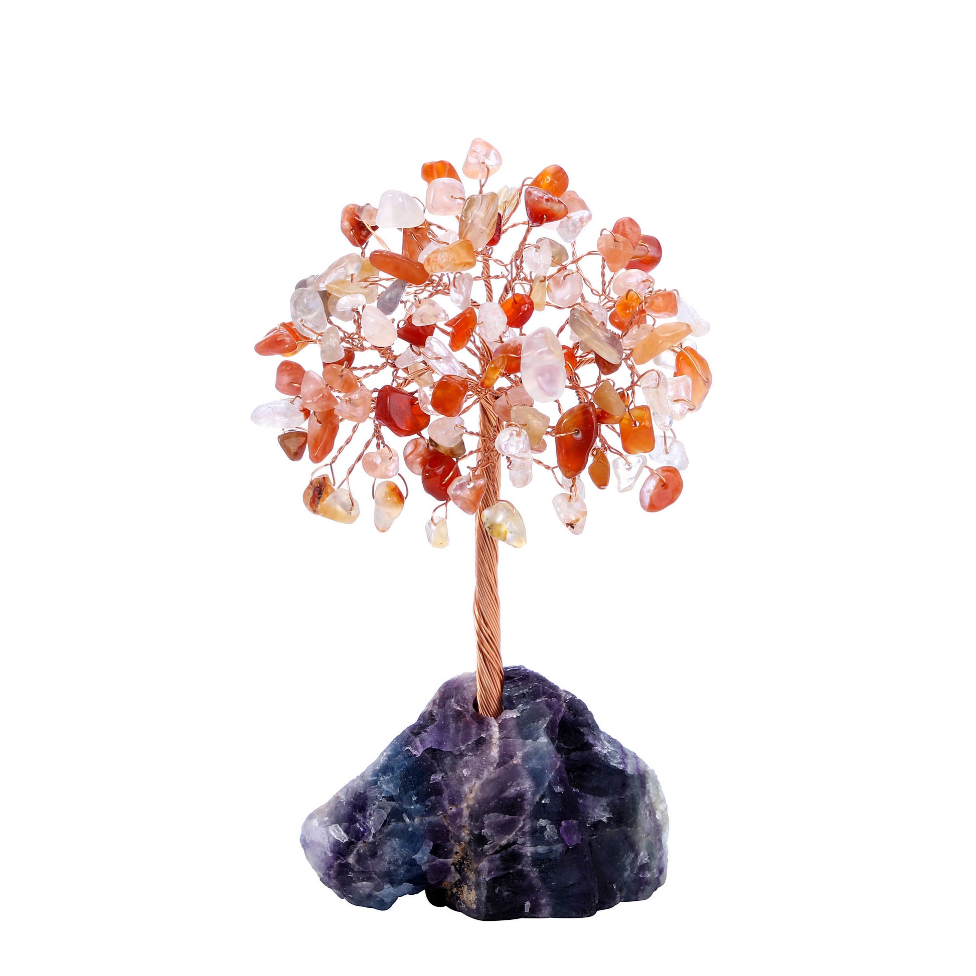 - Handmade Gemstone Copper Wire Wrapped Money Tree: Natural tumbled gemstones as leaves ,copper wire as trunk , fluorite stone as base ,an exquisite crystal tree of life decoration for home and office decoration. We will fold up all branches and pack secured while packing.