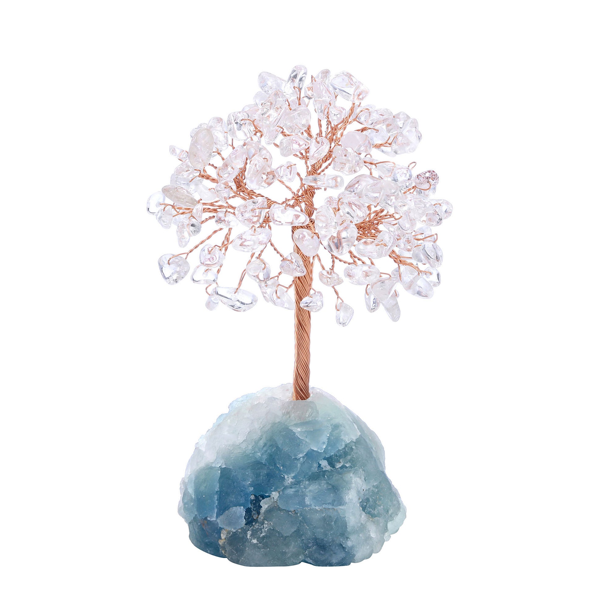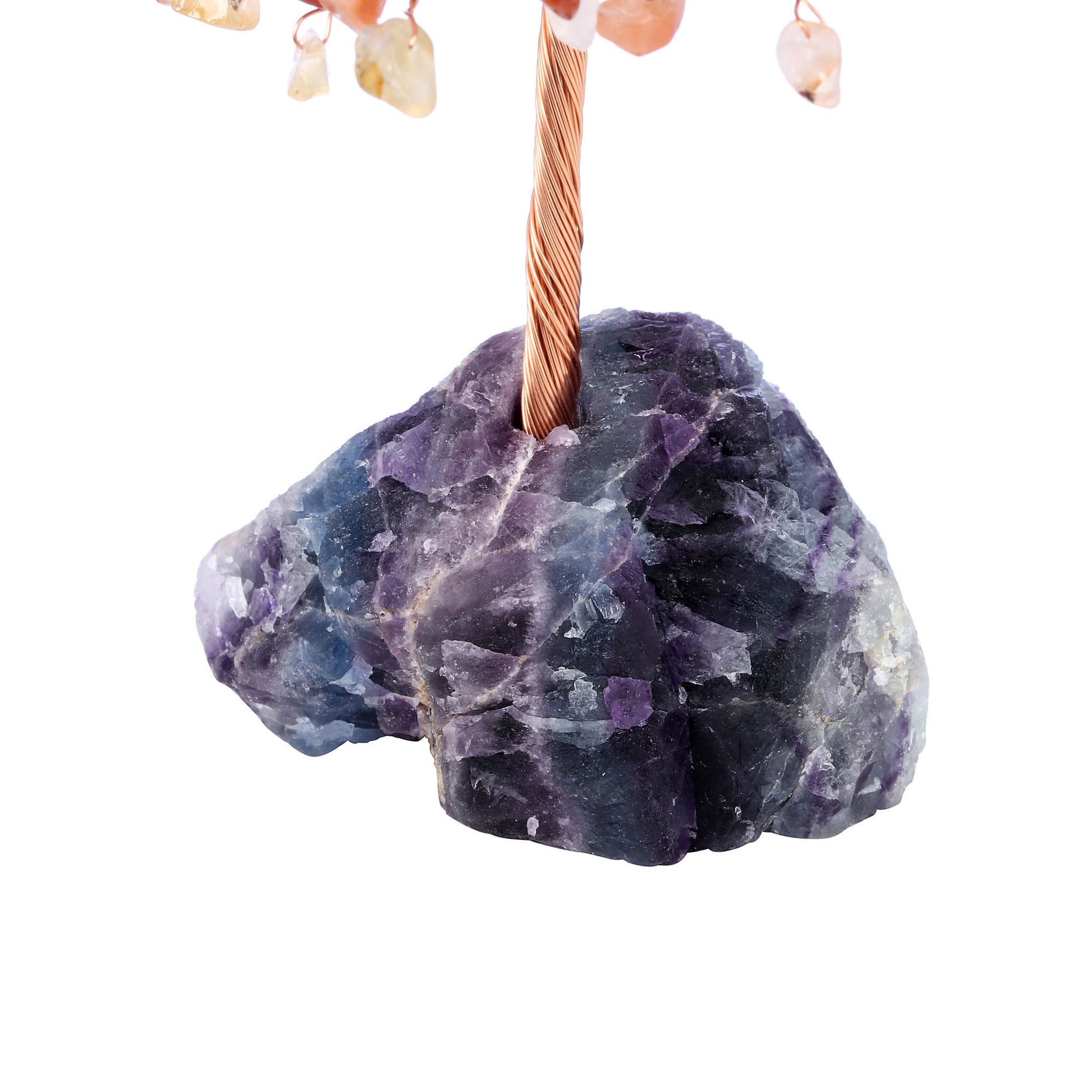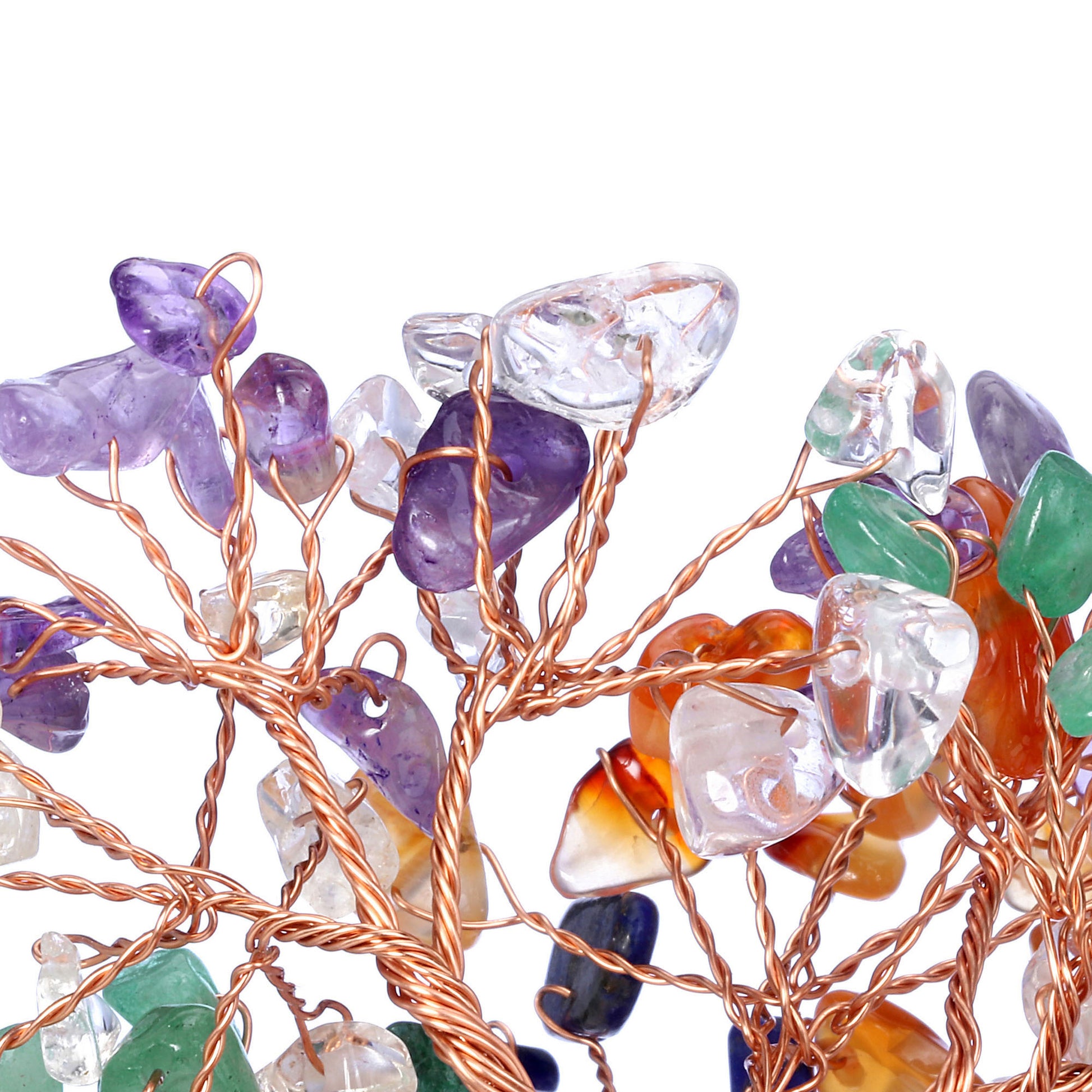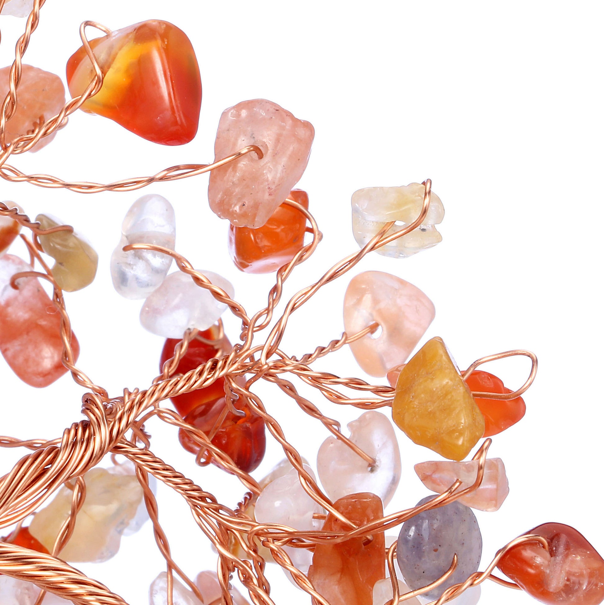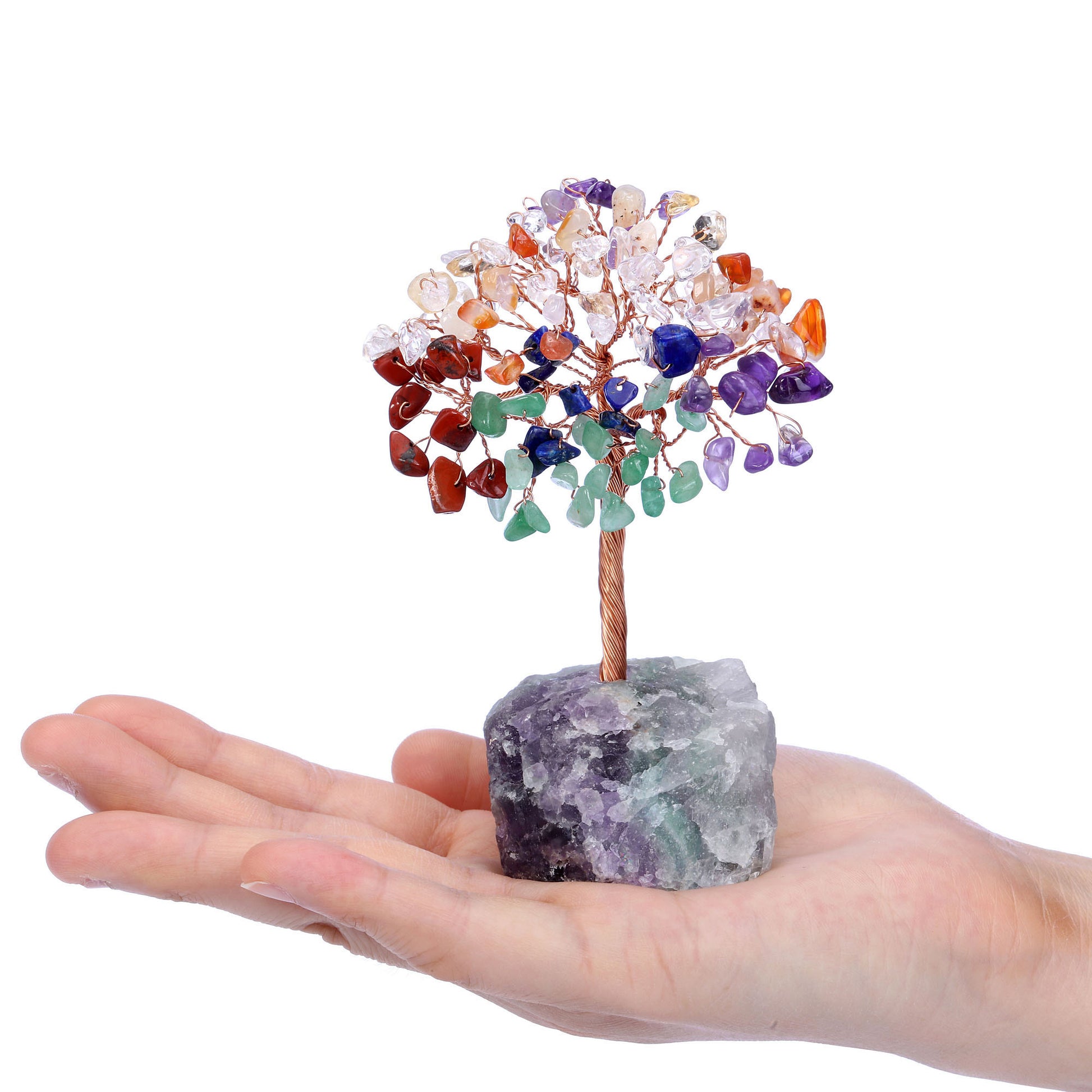 - Handmade Gemstone Copper Wire Wrapped Money Tree: Natural tumbled gemstones as leaves ,copper wire as trunk , fluorite stone as base ,an exquisite crystal tree of life decoration for home and office decoration. We will fold up all branches and pack secured while packing.