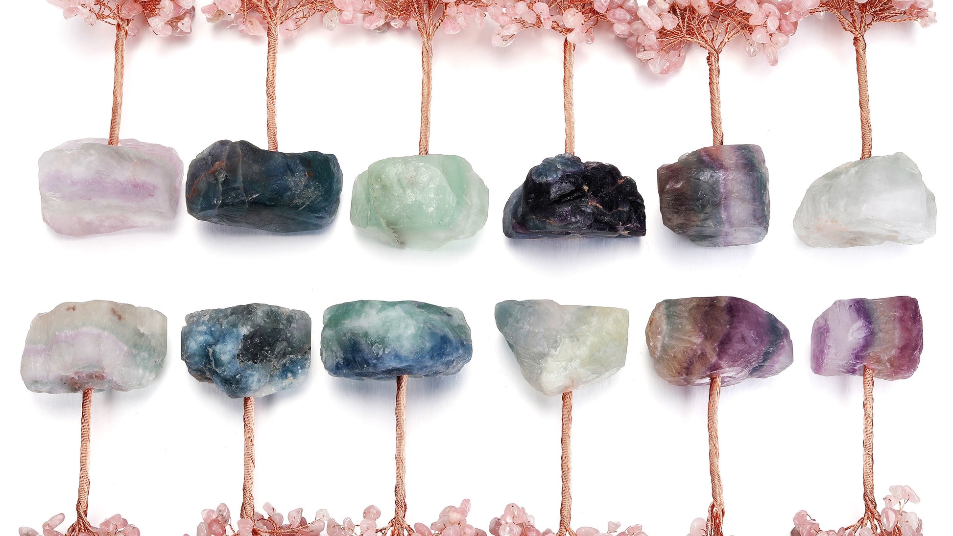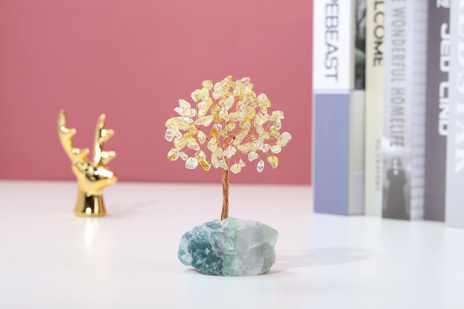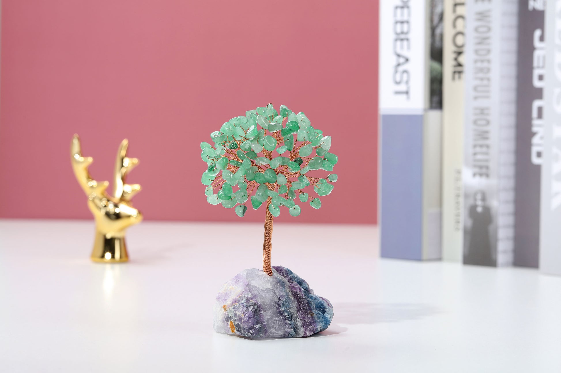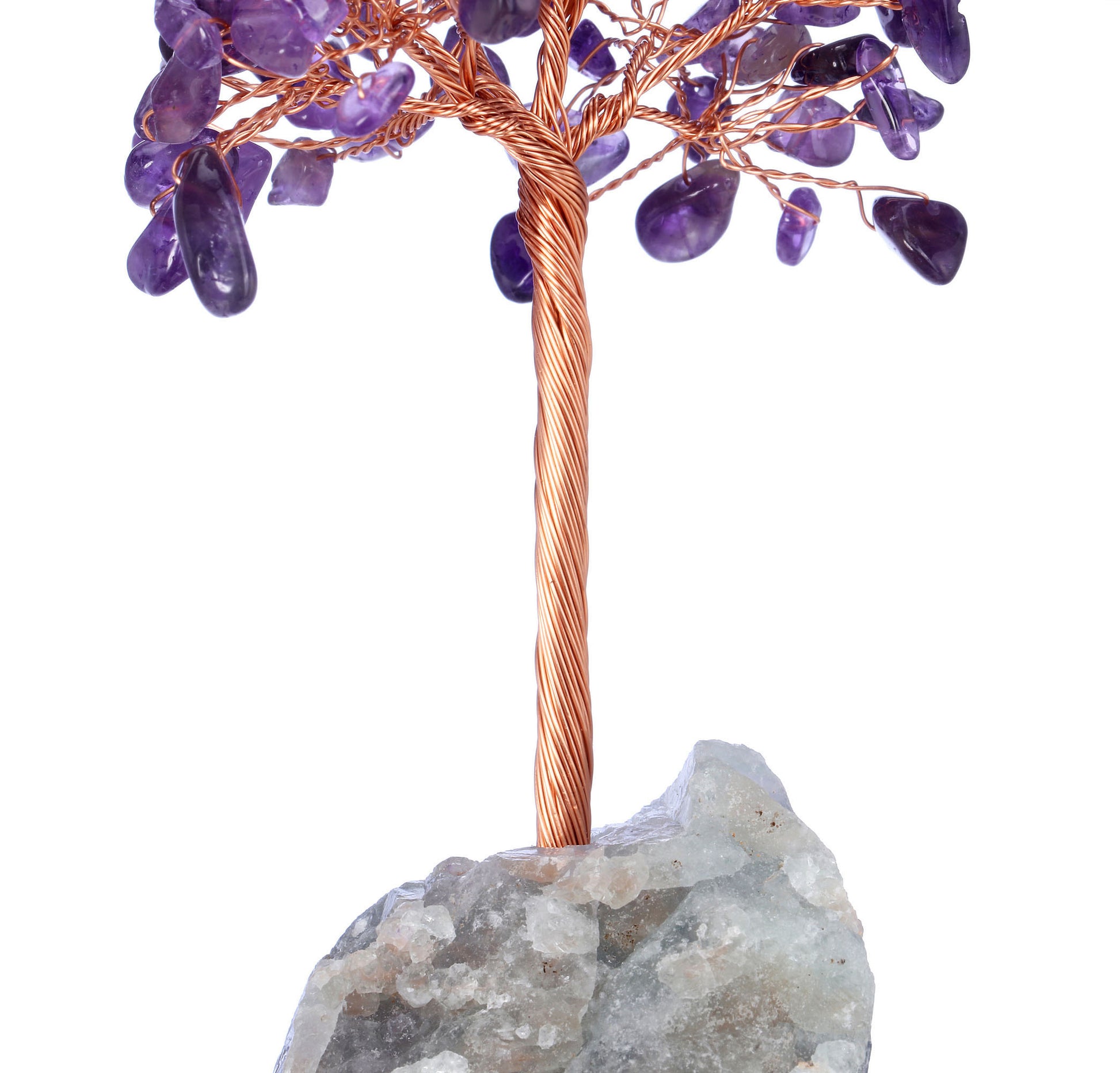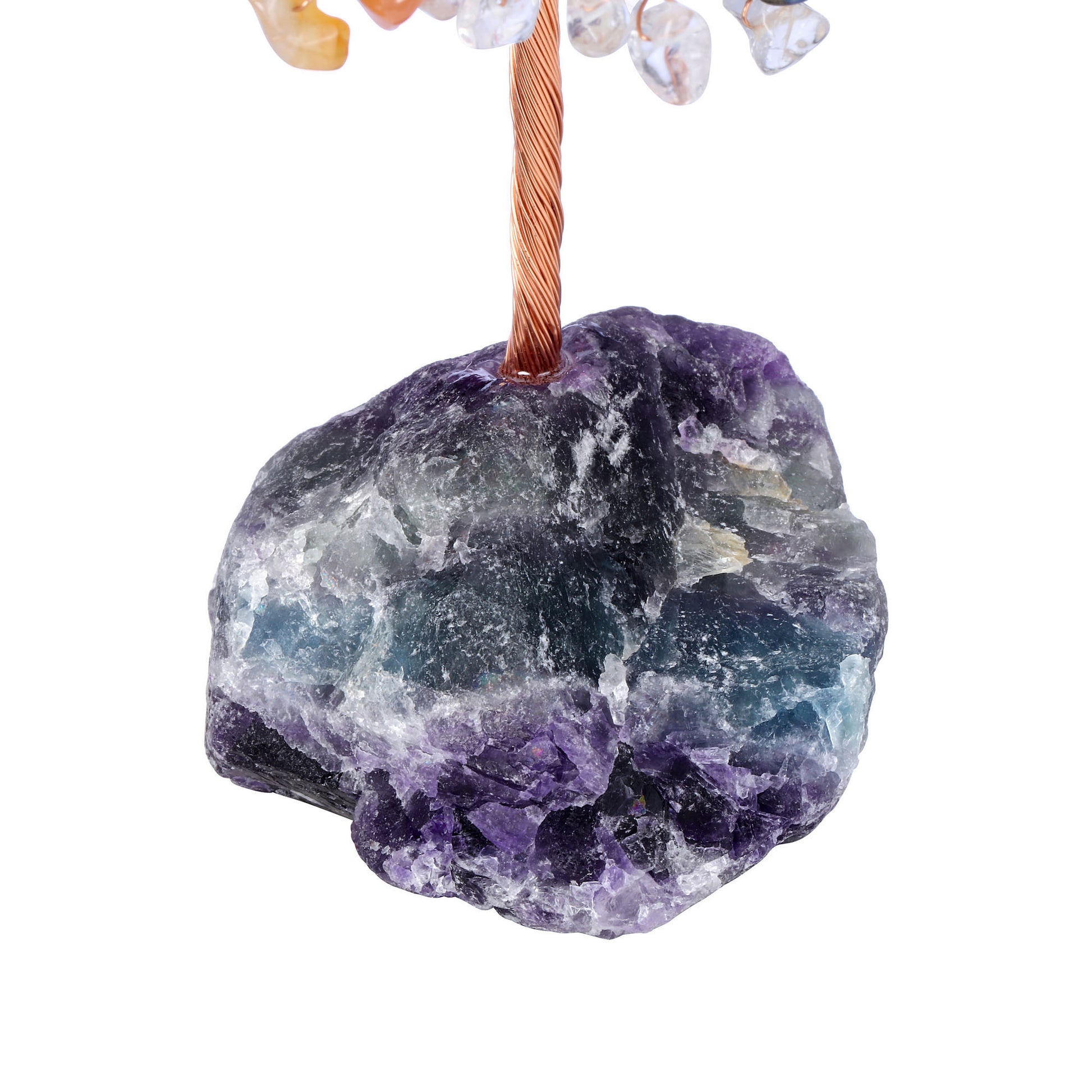 - Handmade Gemstone Copper Wire Wrapped Money Tree: Natural tumbled gemstones as leaves ,copper wire as trunk , fluorite stone as base ,an exquisite crystal tree of life decoration for home and office decoration. We will fold up all branches and pack secured while packing.