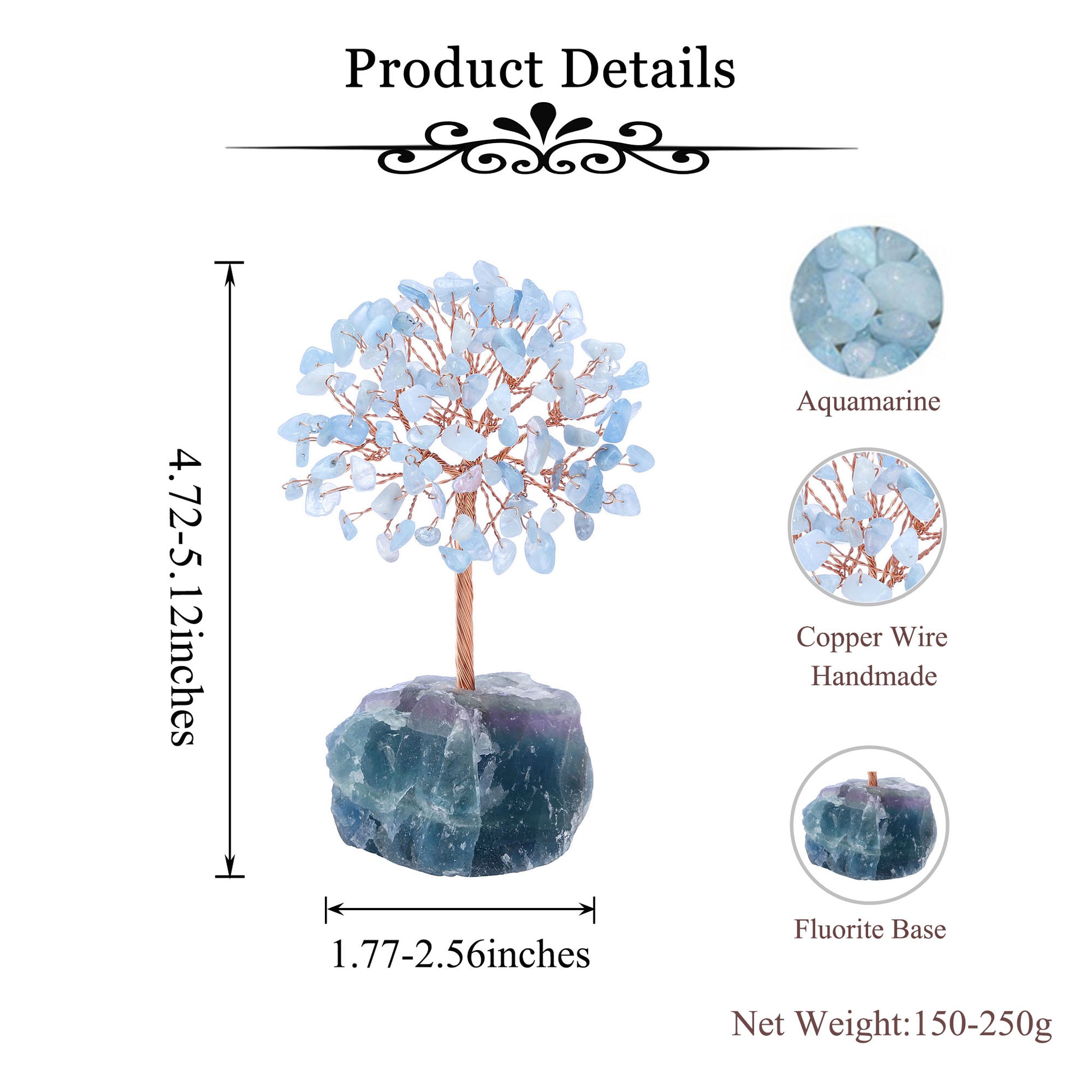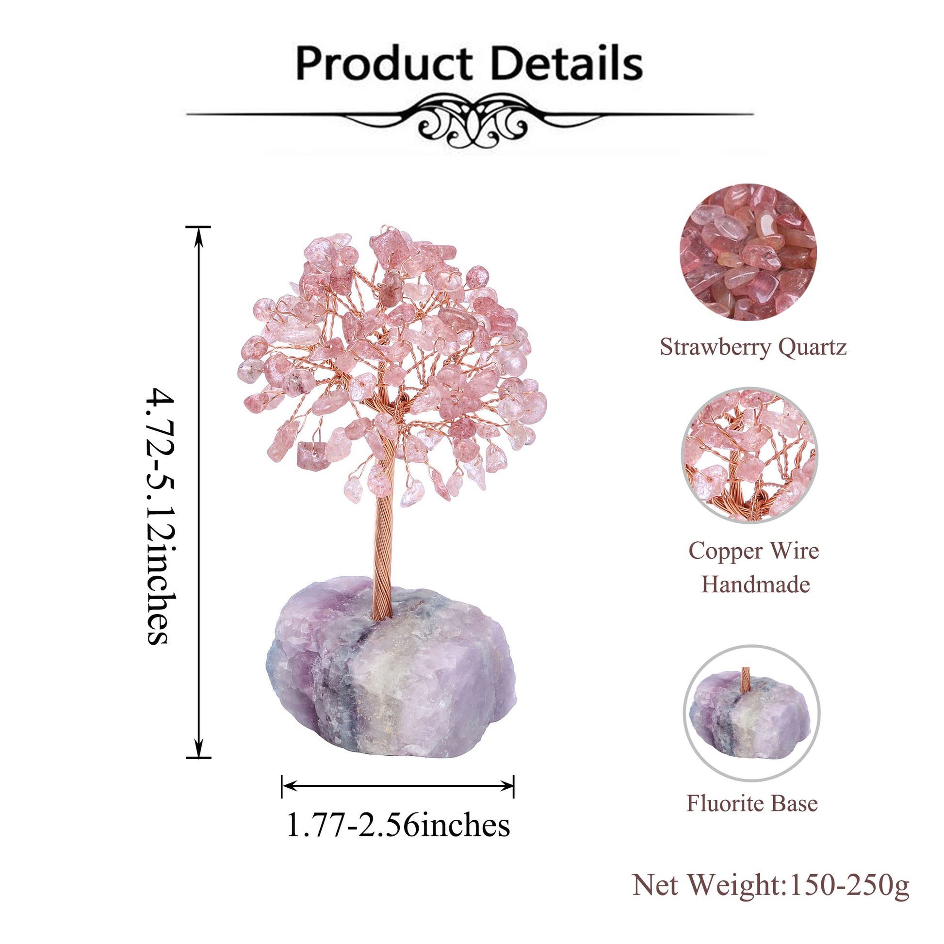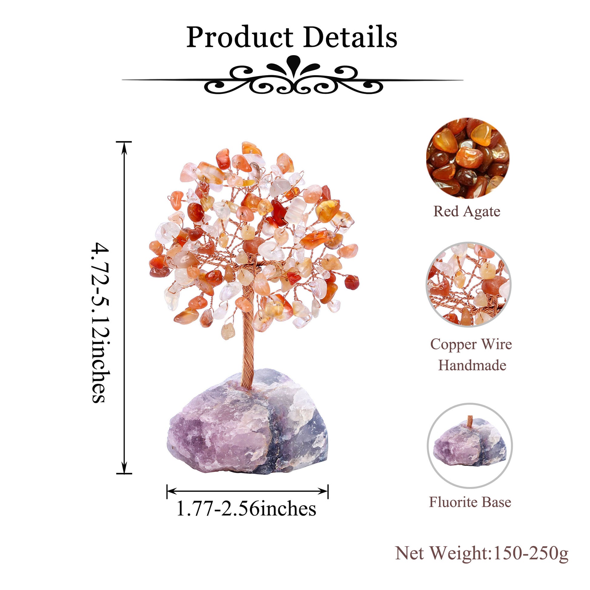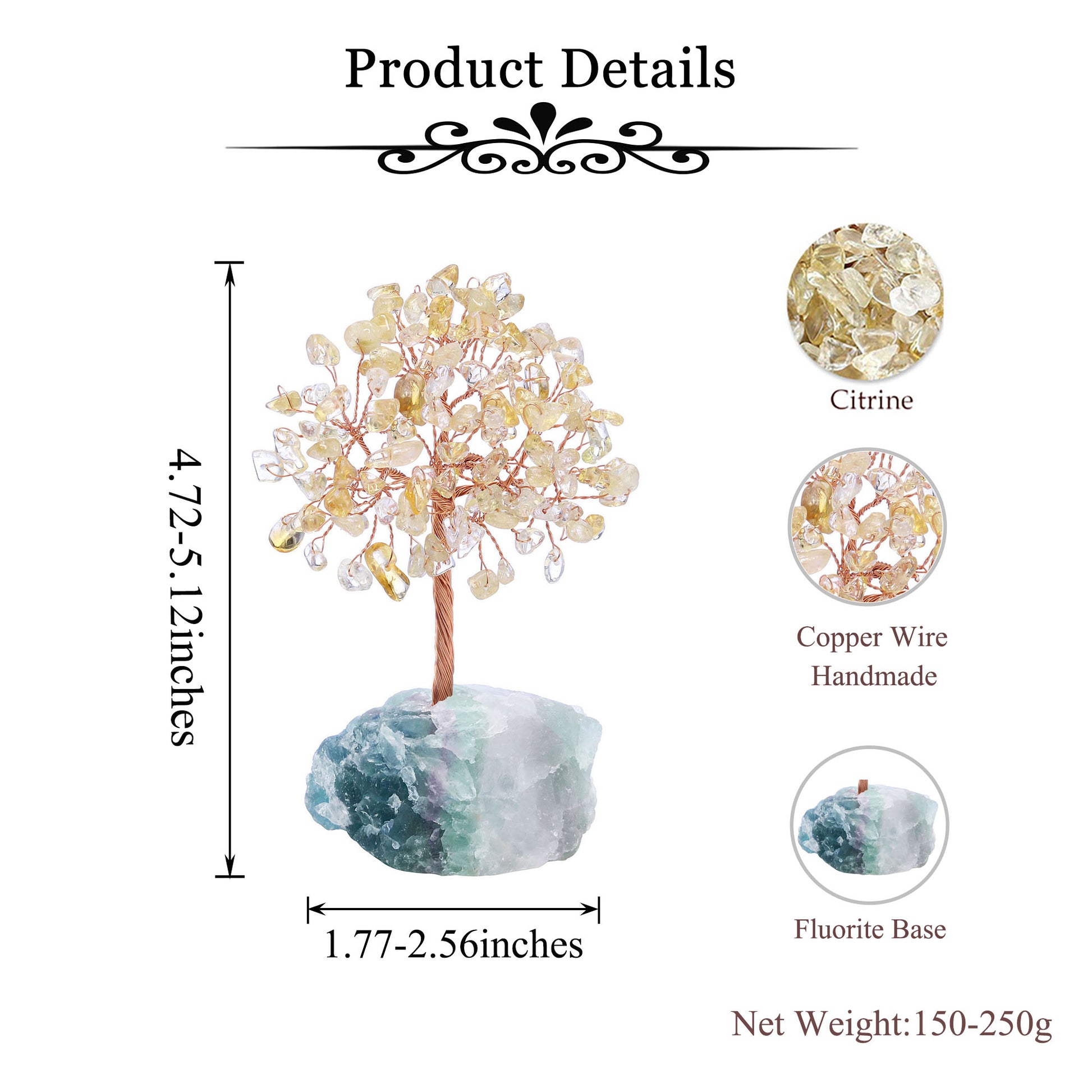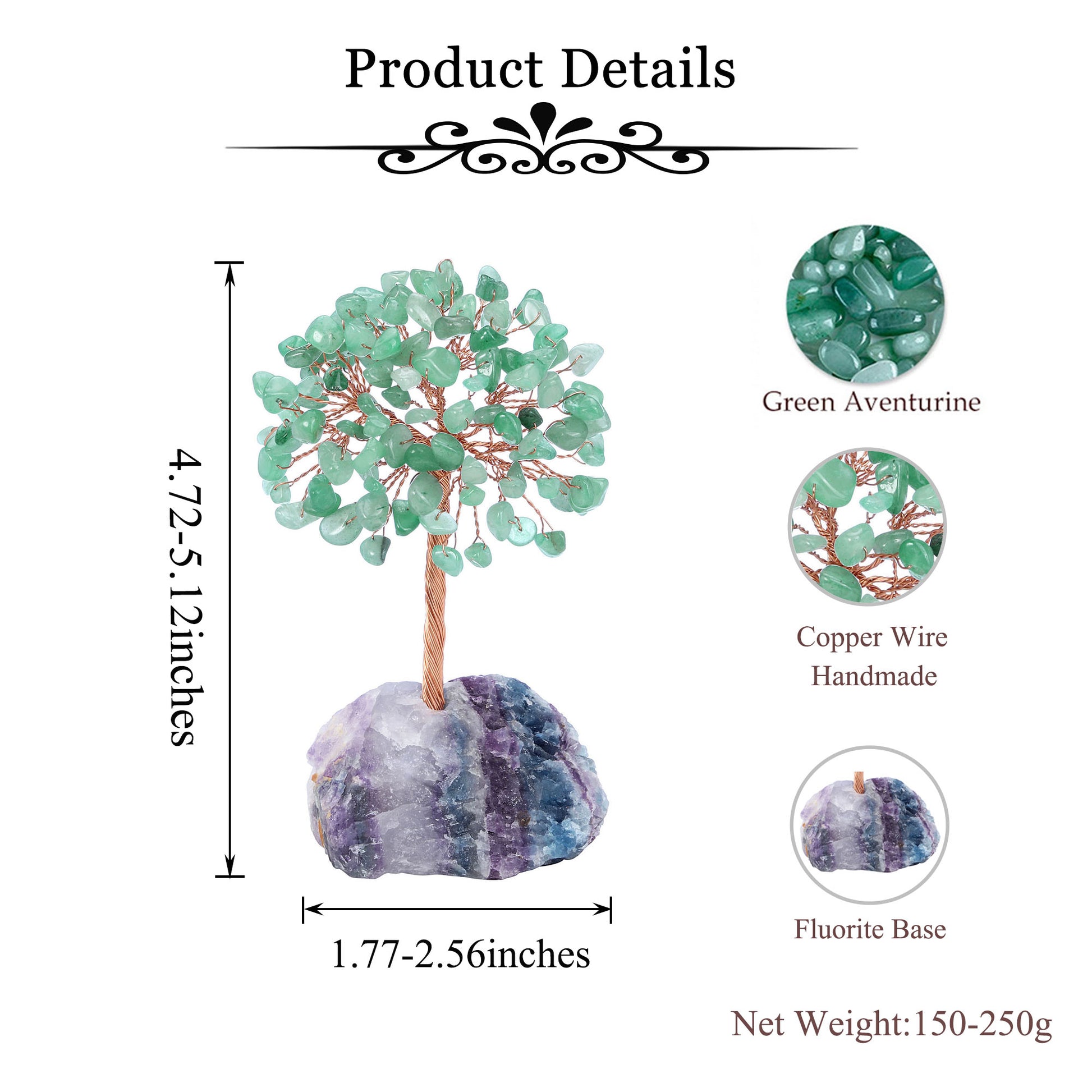 - Specifications: Money Tree and Stone Total heigh is approximately 12-13cm(4.72"-5.12"),Fluorite base is about 4.5-6.5cm(1.77"-2.56").Weight approx.150-250 grams.There are some variations among the trees on size, color and shape, you will receive an unique but similar tree.