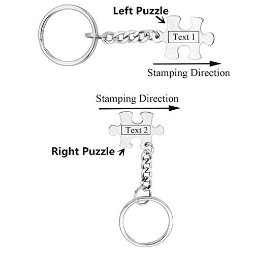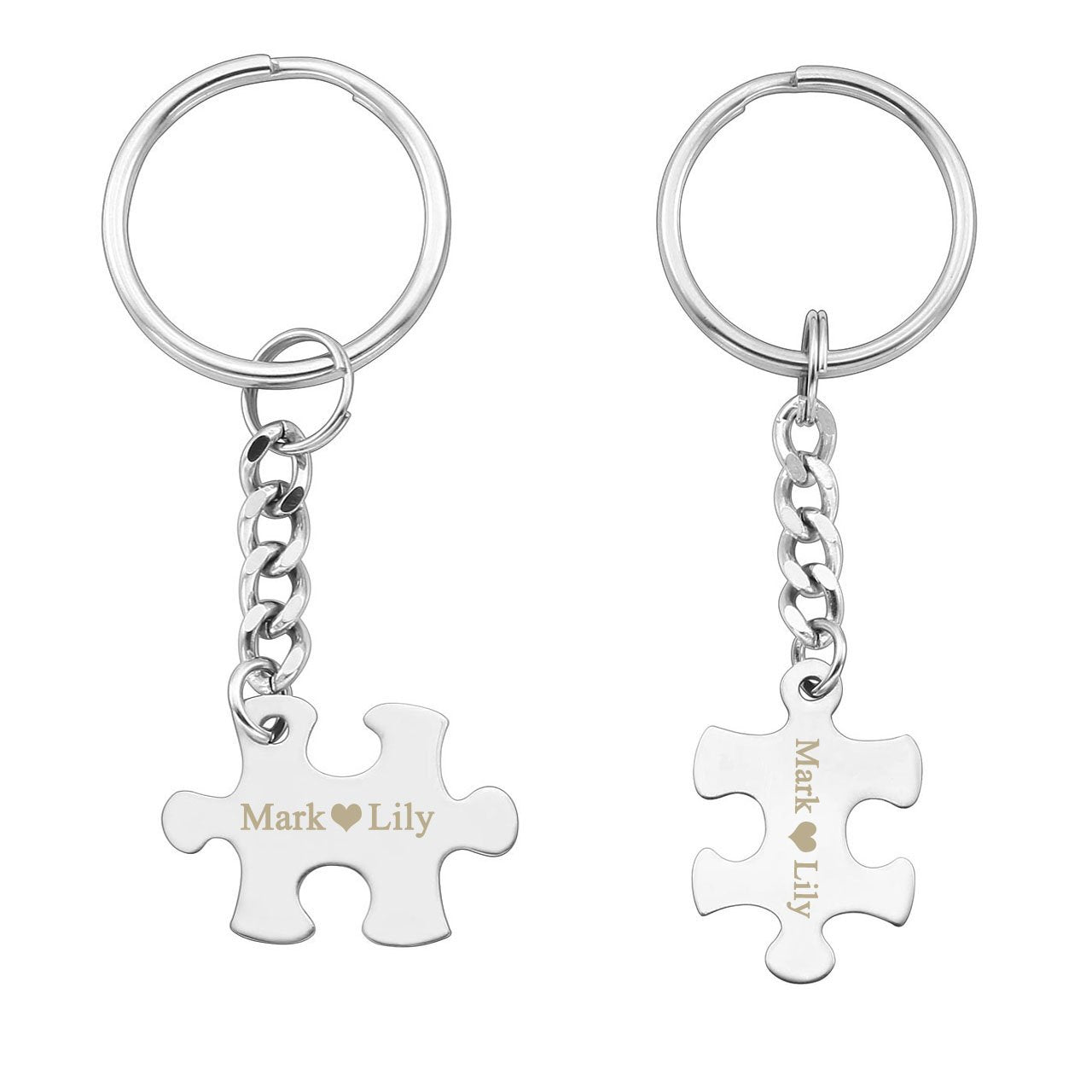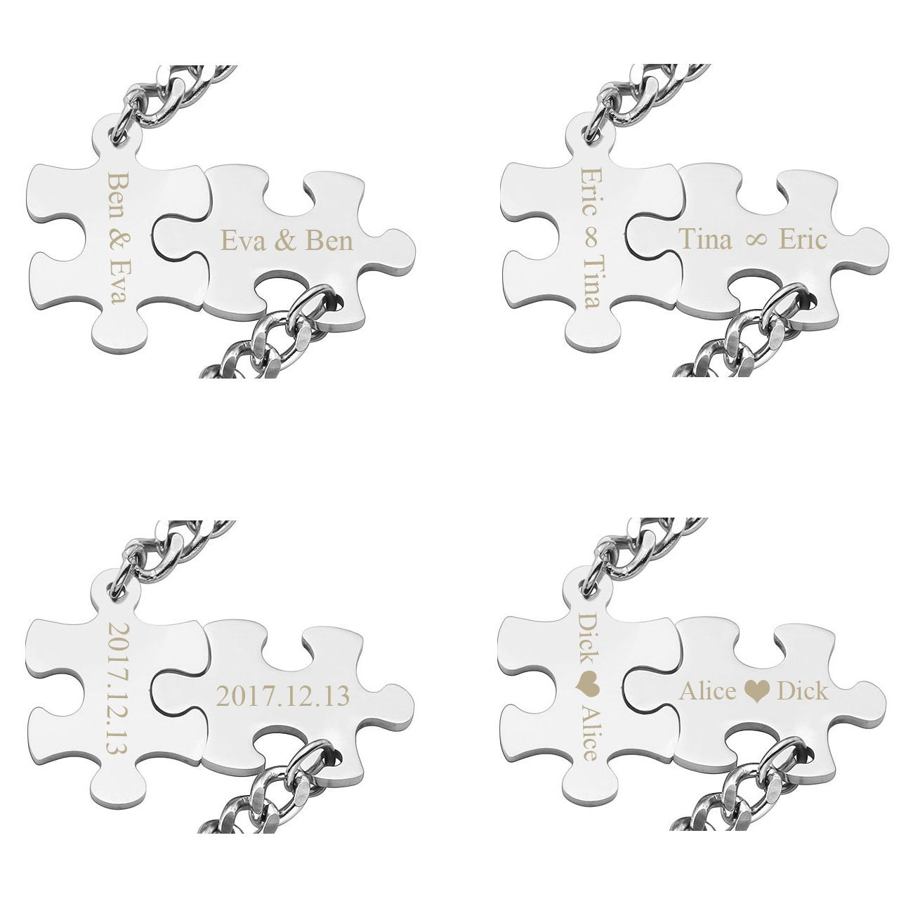 - Choose this stainless steel puzzle couples keychains, Personalize it with a message of your choice for a symbolic statement you'll love to admire and wear. Customer normally engrave: name, birth of date, idenfication info. inspiration & motivation quote, Expressing love for a friend, lover,mom,father etc. It will be a unique personalized and meaningful gift.