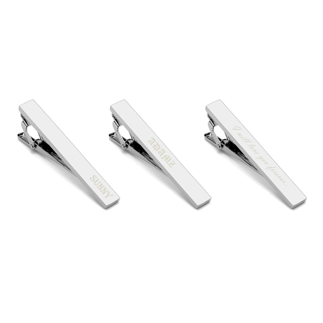 - Material: High Polished Stainless Steel. Custom Your own Message Tie Clip. Please check the engraving content carefully before placing an order.If the Self-Customize Service can not satisfy your request,please "Contact Seller" after finish the payment immediately.