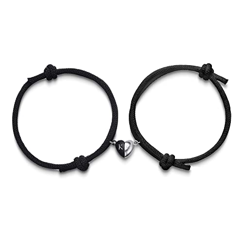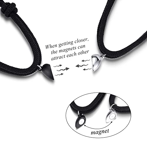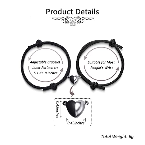 - Matching Brcaelets Details - Half Heart Pendant Size : 0.78"*0.35"(20*9mm);Diameter wax rope: 5"-10";Weight 10 grams.Adjustable Length Bracelet: 4.5-7.5 inches. Light weight and comfortable for wearing.Made of high-quality nylon string, not easy to break. Brand new magnetic heart design + alloy, never fade and wouldn't fall out.