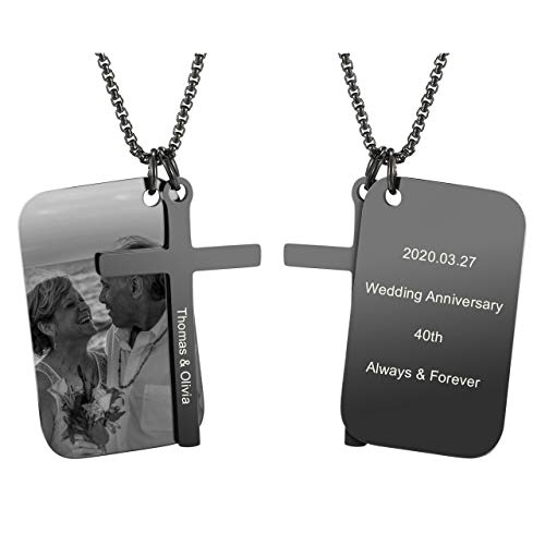 - ♥Personalized Engraved Dog Tags Cross Necklace for men and women. Back side of pendant and cross pendant can be engraved text line; dog tag text up to 50 characters; cross pendant text up to 30 characters.You also can engrave symbol as crown,heart,infinity etc.