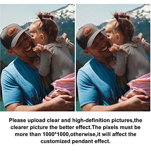 - ♥How To Customize Photo?--Click "Customize Now",upload your image, adjust image as you like. You can use any picture, it can be an image about people, animal, beautiful landscapes, or memorable things. ♥MORE IMPORTANT♥ Please send us high resolution, clear quality images.The picture size must be more than 1000*1000,otherwise, it will affect the customization effect.The clearer picture the better effect.The pendant will be blurring if picture is blurring.