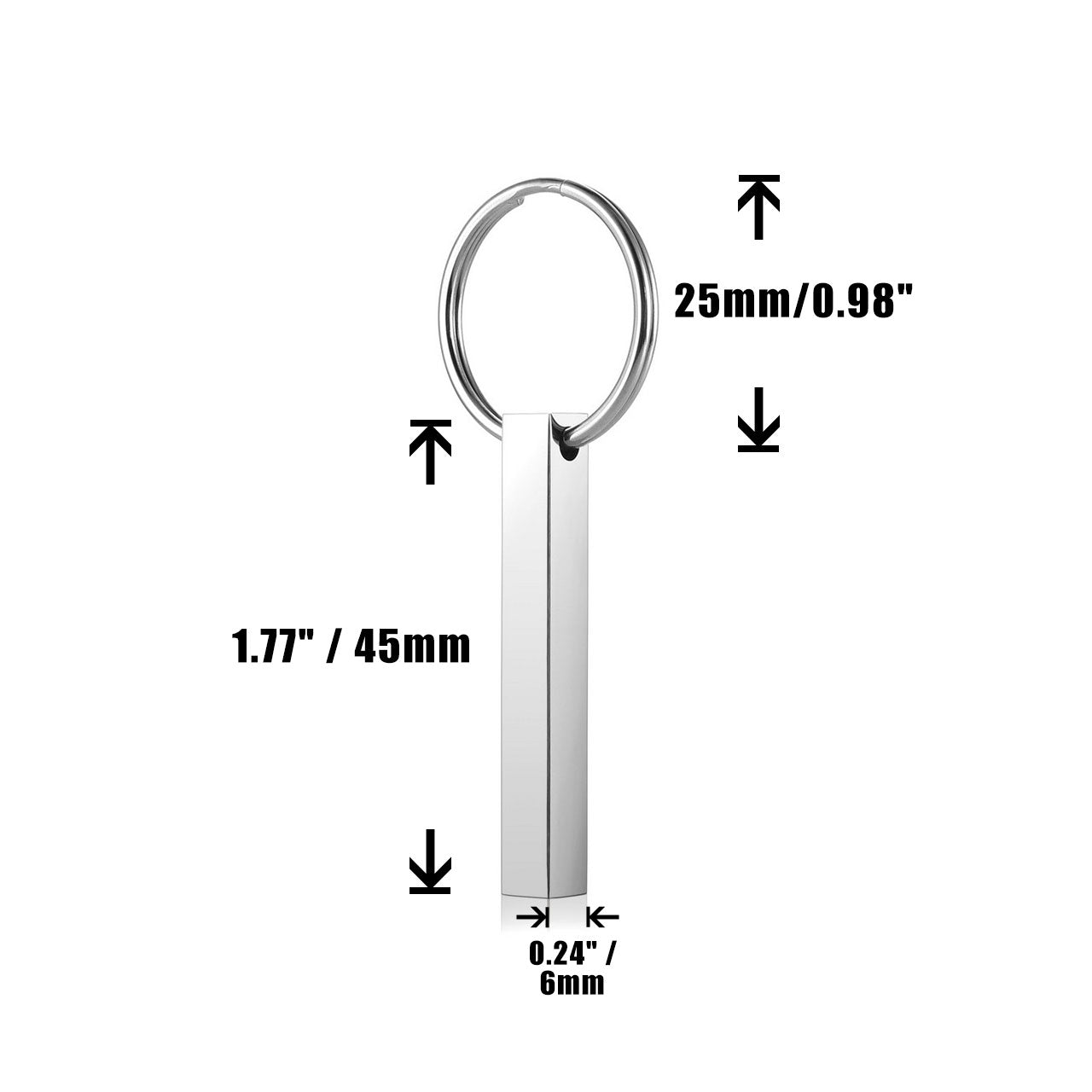 - Fashion Stainless Steel Key Ring with 4 Sides Rectangle Bar pendant makes you special and shining in every occasion. Beautiful light design will have your friends wanting one too.