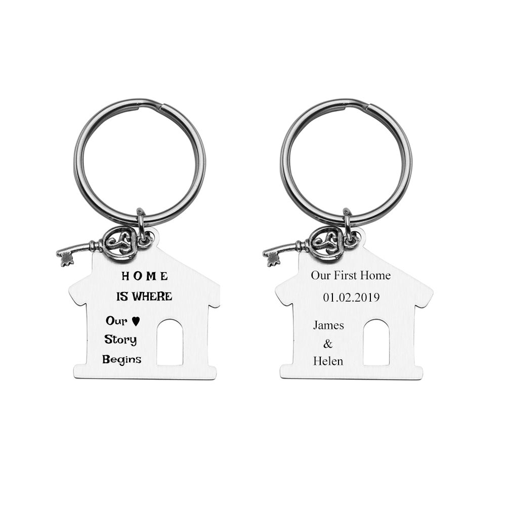 Personalized House Key Housewarming Message Tag Keychain 2PCS | Jovivi