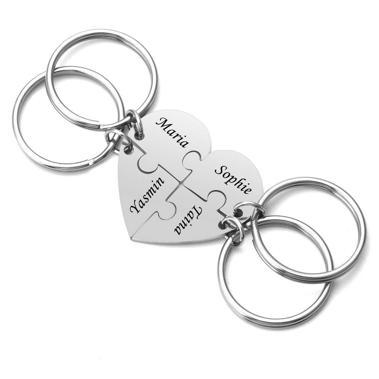 Custom Stainless Steel Best Friends Keychains, 4pcs Set Puzzle Piece Keychains,Friendship Gifts