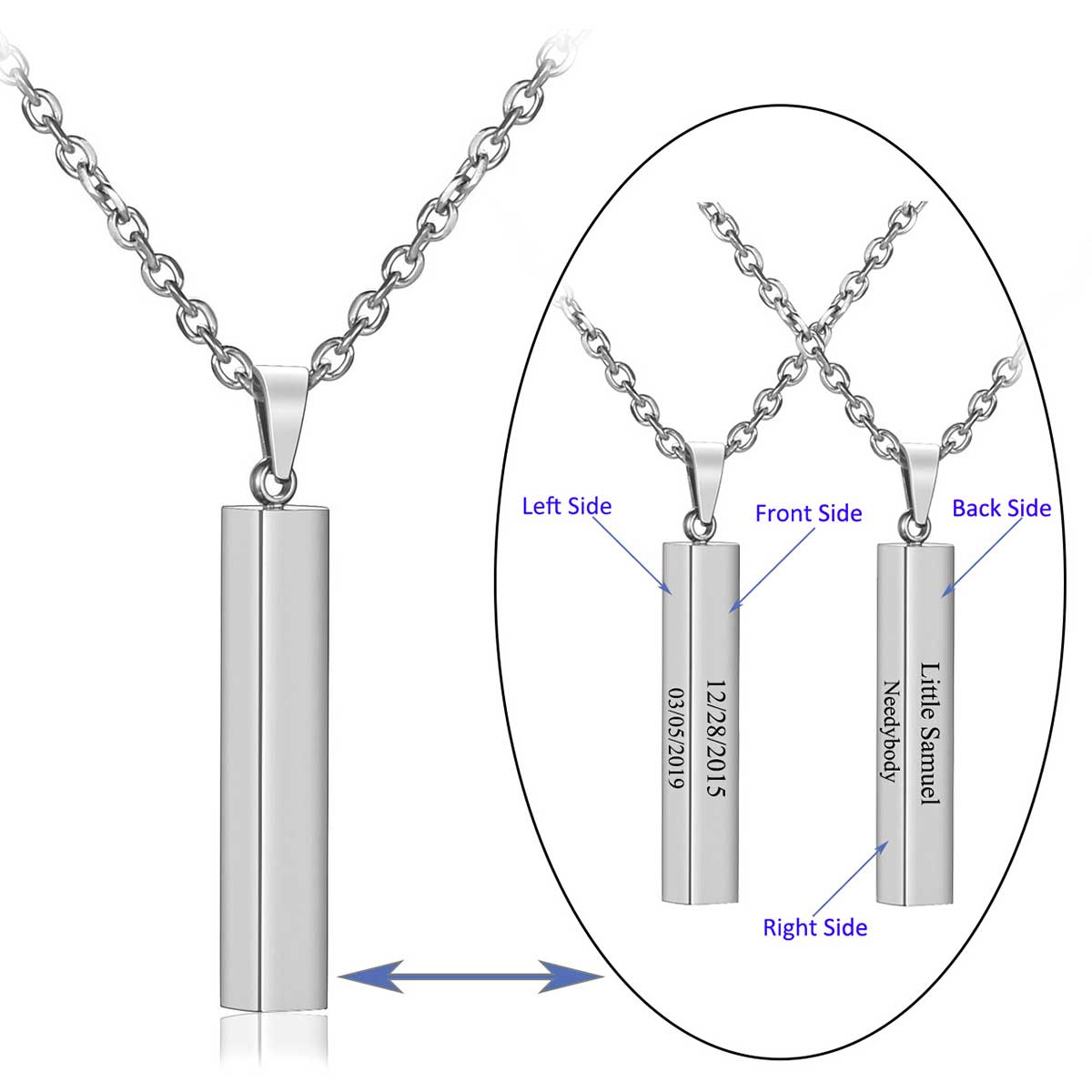 Personalized Name Bar Memorial Necklace Silver | Jovivi