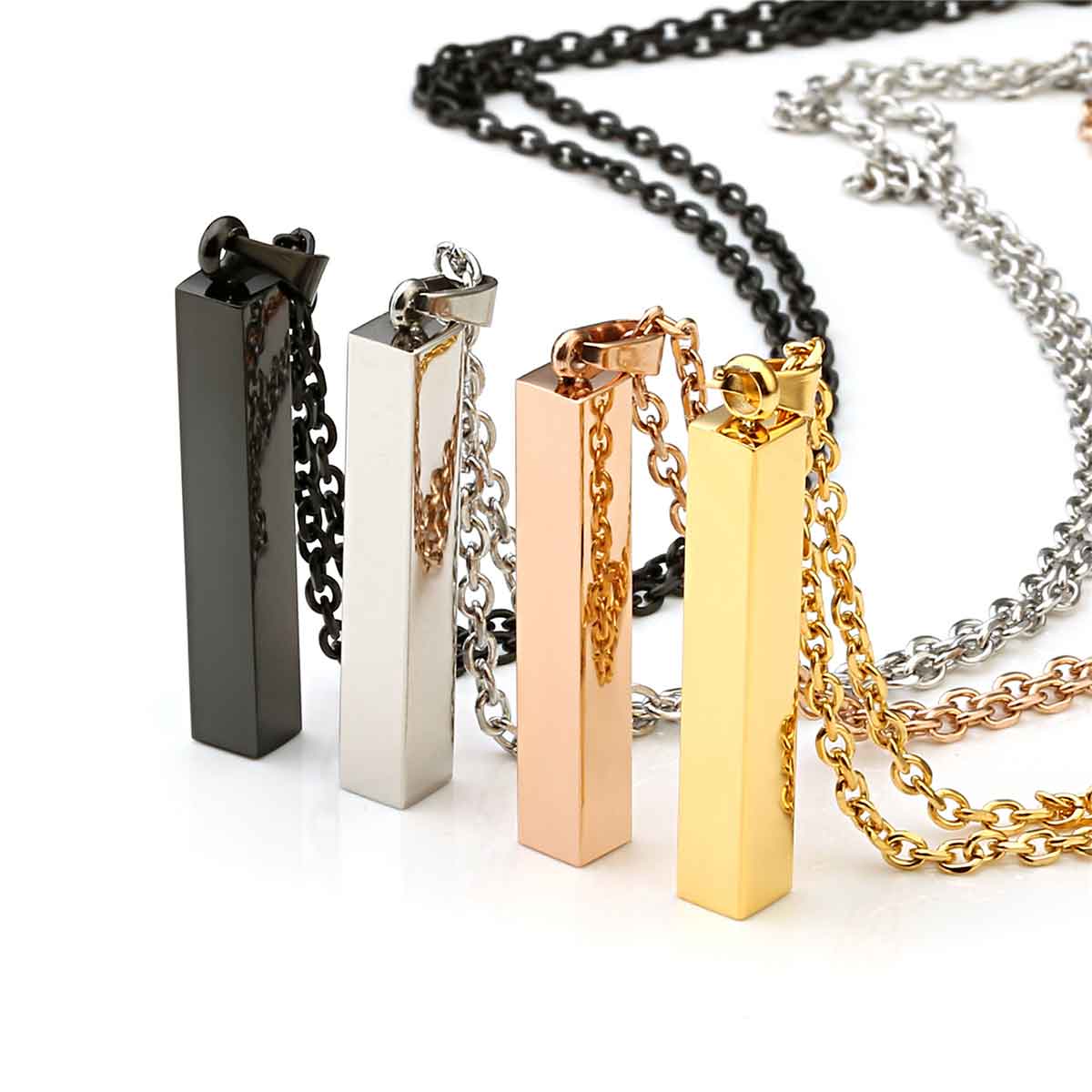 ❤️Fashion Stainless Steel Necklace with 4 Sides Rectangle Bar pendant makes you special and shining in every occasion. Beautiful light design will have your friends wanting one too.