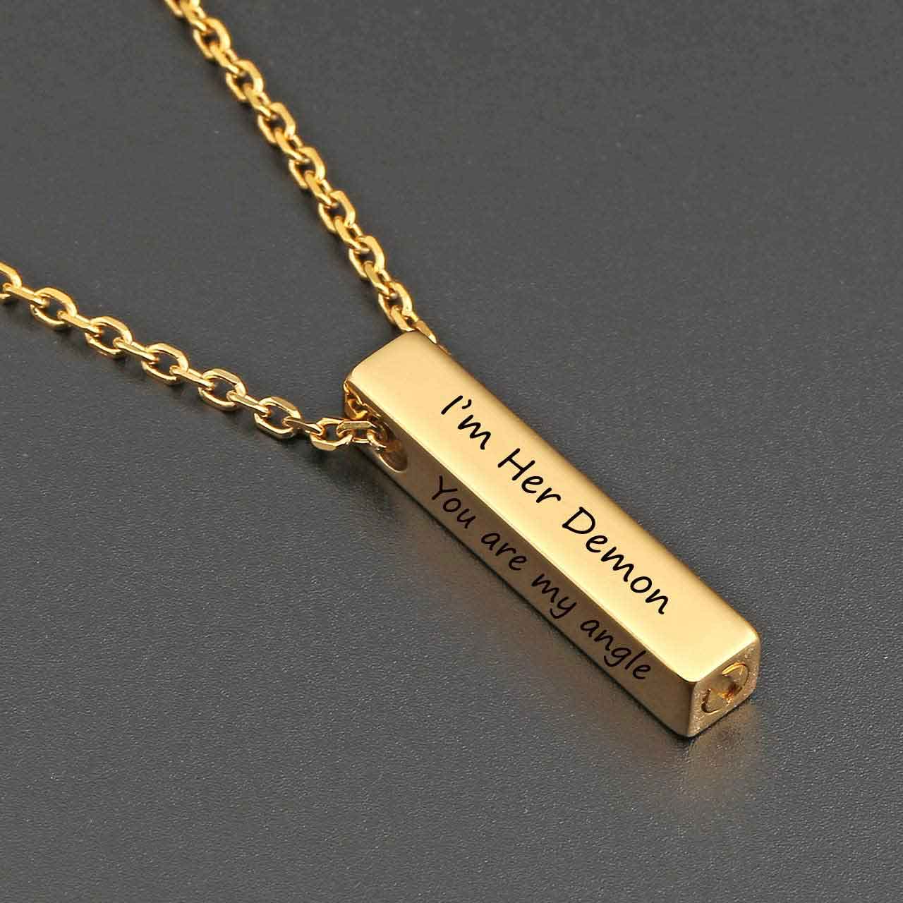 The personalized engraved vertical bar urn necklace can be engraved words on the pendant.