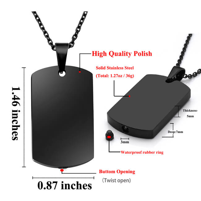 ❤️The personalized tag urn necklace featuring engraving a special date and a photo on it. A perfect gift to memory. Charm Polish tag shape Urn Pendant Locket contains a cavity which can be filled with your pet's ashes, hair, keepsake on it. Keep your pet's memory close to your heart always. (It needs a straight screwdriver to open the pendant.)